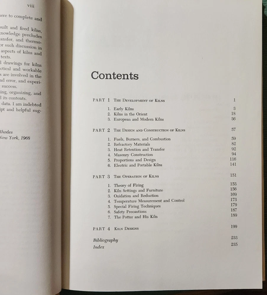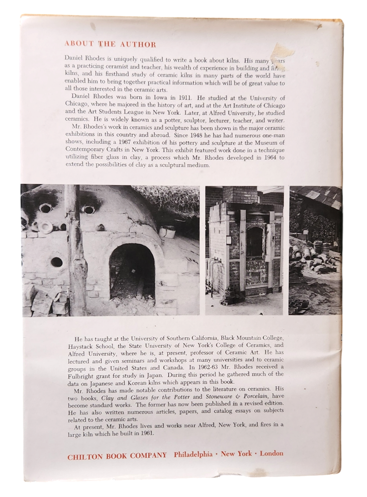 Kilns: Design, Construction & Operation Daniel Rhodes HC 1968, 5th Printing 1973 The book is in good condition. The dust jacket shows wear. The principles and methods involved in kiln design and construction receive a thorough and authoratative treatment. Another section os totally devoted to kiln operations.The book is illustrated throughout with numerous drawings, diagrams, tables, and photographs.