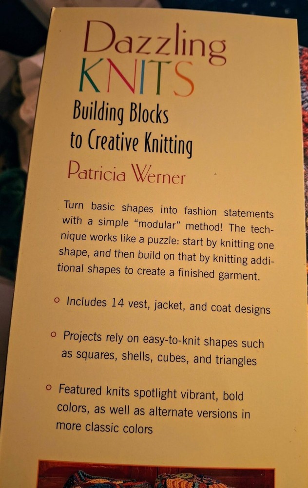 "Dazzling Knits : Building Blocks to Creative Knitting" by Patricia Werner is a vintage 8th edition trade paperback book published in 2004. It is signed by the author and features illustrations. The book, intended for adults, explores needlework and knitting techniques with 128 pages of content. It is in English and weighs 1lb, 4.4oz.