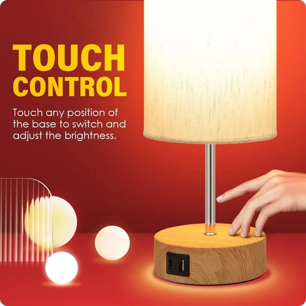 Lámpara de mesa con control táctil Lámparas de noche regulables de 3 vías, 2023 【Diseño minimalista para el hogar】: esta lámpara de mesa regulable con control táctil es pequeña y perfecta para decorar cualquier lugar de su casa. La lámpara de mesa USB ideal para la sala de estar, el dormitorio, el estudio, la habitación de los niños, etc. Con este complemento, su sala de estar o su dormitorio se sentirán un poco acogedores y calentitos. 【Resplandor cómodo】: nuestra pequeña lámpara de escritorio crea una sensación agradable y reconfortante en la casa cuando pasa tiempo con su familia, ya que la pantalla de tela de lino suaviza la luz y la protege mejor para sus ojos. 【Control táctil suave regulable de 3 vías】: la lámpara de mesita de noche regulable ofrece tres niveles de opciones de brillo (bajo, medio y alto). Simplemente toque en cualquier lugar de la base de metal para ajustar la iluminación para satisfacer sus diferentes necesidades. Una luz de noche para dormir bien o amamantar. Una iluminación de acento para crear un ambiente acogedor. Suficiente brillo cómodo para estudiar o trabajar. Es súper práctico de operar. 【Puertos de carga USB A&C y tomacorriente de CA】- Nuestra lámpara de mesa contiene puertos de carga USB A y USB C (5V/2.1A) integrados que facilitan la carga de dispositivos en su mesa de noche. También tiene un solo tomacorriente de CA (2 clavijas) que libera espacio en la pared del tomacorriente. Independientemente de si la lámpara está encendida o apagada, puede cargar su teléfono, Kindle, auriculares, difusor, parlantes u otros dispositivos eléctricos.