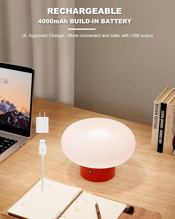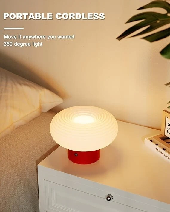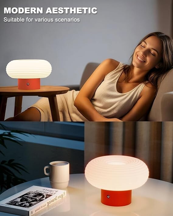 LÁMPARA DE MESA PORTÁTIL INALÁMBRICA: Dile adiós a la búsqueda constante de tomas de corriente o a estar atado por cables. La lámpara de mesa que funciona con pilas te da la libertad y flexibilidad de colocarla en cualquier lugar que desees. Ya sea que estés leyendo en la cama o llevándola al aire libre para una velada acogedora, esta lámpara portátil es cómoda y sin complicaciones. 3 MODOS DE ILUMINACIÓN REGULABLES: diseñada para adaptarse a varios escenarios de uso. La lámpara inalámbrica ofrece 3 niveles de brillo ajustables. Ya sea que necesites un ambiente suave y cálido para una velada acogedora, un brillo medio para un trabajo concentrado o una luz brillante y energizante para leer a altas horas de la noche, esta lámpara te tiene cubierto. Experimenta un control de brillo sin esfuerzo con solo tocar el botón del interruptor en la base de la lámpara de mesa. CUIDADO DE LOS OJOS: hecha de pantalla acrílica de primera calidad y base de metal. La lámpara de hongo difunde la luz de manera uniforme, agradable a la vista, reduce la fatiga visual en la mayor medida posible. Emite una luz suave sin parpadeos, no dura como la enorme luz de techo de la oficina o la escuela, protege en gran medida la salud ocular de tu familia. Sin parpadeos ni deslumbramientos. ELEVA TU ESPACIO CON UNA SIMPLICIDAD ELEGANTE: la pequeña lámpara está inspirada en el diseño elegante y moderno de un hongo. Esta lámpara de escritorio recargable realza sin esfuerzo la decoración de tu hogar. El elegante diseño circular proporciona una iluminación de 360 ??grados, infundiendo tu espacio con un brillo cálido y acogedor. Ya sea para tardes acogedoras o momentos especiales, el suave resplandor de la lámpara de mesa crea una atmósfera romántica. Adecuada para dormitorios, restaurantes, bares y rincones de lectura. GRAN OPCIÓN DE REGALO Y SERVICIO EXCEPCIONAL: la lámpara de mesa es una opción de regalo perfecta. Su diseño elegante la convierte en una pieza versátil y atemporal que complementa cualquier decoración del hogar. Respaldamos nuestros productos. Si no estás satisfecho con nuestras lámparas, solo contáctanos y nos aseguraremos de que estés 100% satisfecho.