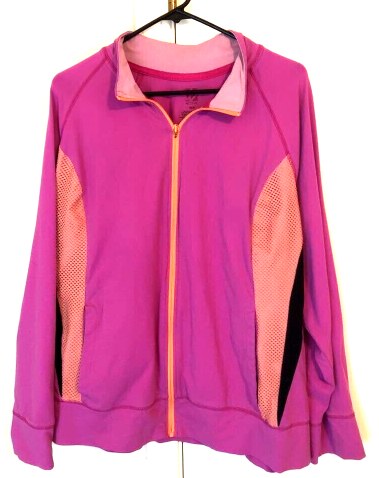 LA Active Athletic Jacket Womens Pink Orange Full Zip Front Stretch Knit 18/20 Excellent pre-owned condition. The only defect is the zipper pull has broken off. Still zips up and down easily. See photos. Brand: LA Active Activity: Athleisure Features: Full Zip Color: Pink Jacket Length: Mid Style: Basic Jacket Material: Nylon Blend Sold as pictured. Thanks for looking! This listing was easily created using the SellHound Posting App!