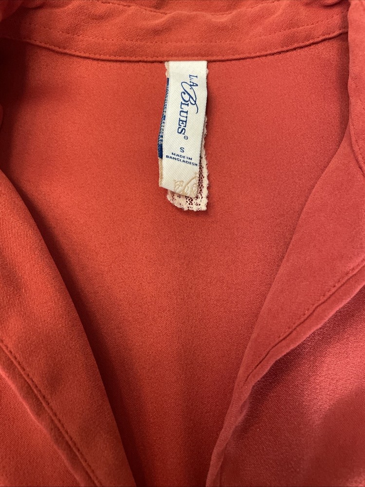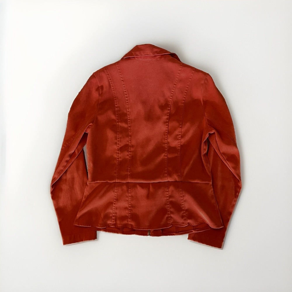 Crafted for versatility and style, the LA Blues burnt orange blazer is a sophisticated addition to any wardrobe. The faux suede finish gives it a touch of elegance, while the polyester blend ensures durability and comfort. Ideal for business meetings or casual outings, this mid-length jacket features a stretch fabric that accommodates movement gracefully. Attention to detail is evident with its sleek long sleeves, zip closure, and subtle button accents. The blazer's solid color and classic design make it a practical choice for layering during the fall, spring, or winter seasons. Whether you're headed to the office or exploring the city, this piece is a timeless staple for your collection. Pit-to-pit 19” Top-to-bottom back 23” Super soft, EUC, really beautiful piece!
