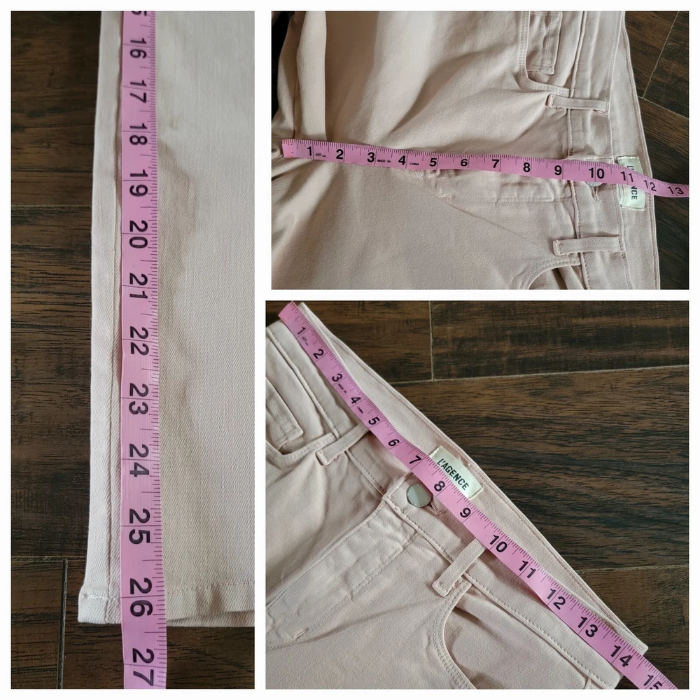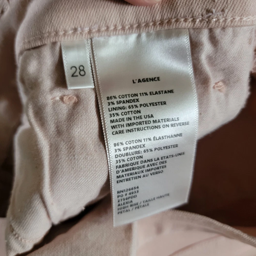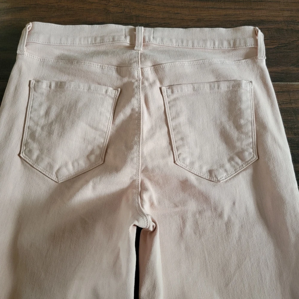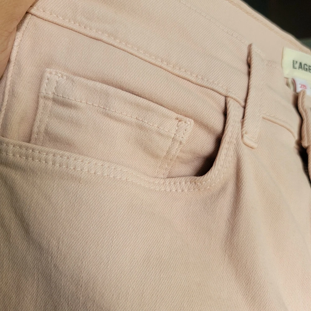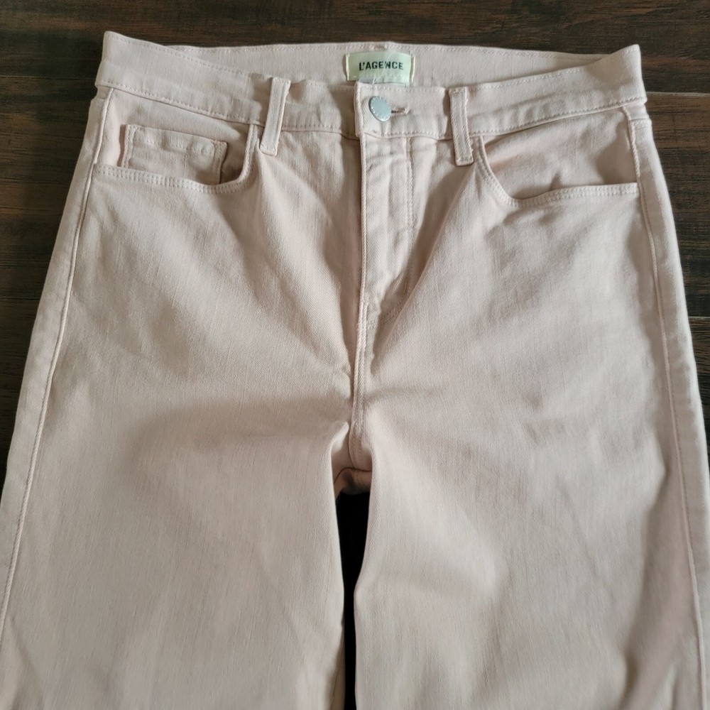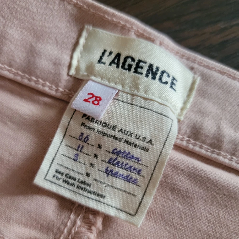 L'AGENCE Stretch Mid Rise Crop Soft Denim Jeans Pants Size 28.Condition: Gentle/light normal wear. No flaws such as stains, fraying, tears or holes.Marked as a size 28.Features:-stretchy fabric component,-soft denim type,-cropped,-slim, straight cut.Color: Not sure of the name of the color but is almost like an apricot/ very soft hint of pink/ peach/ baby pink/ light orange/ or beige with a hint of pink.