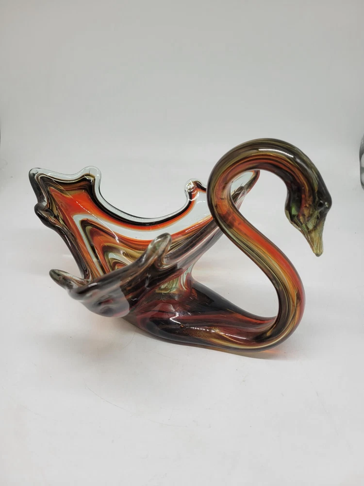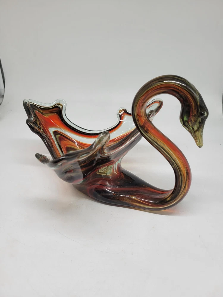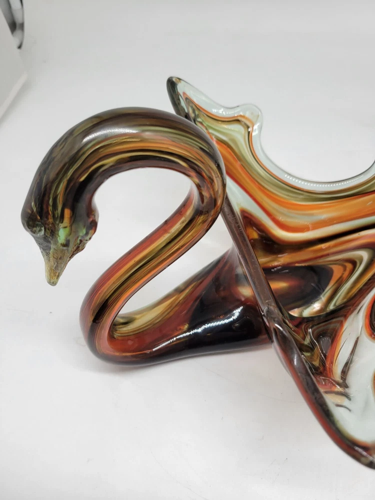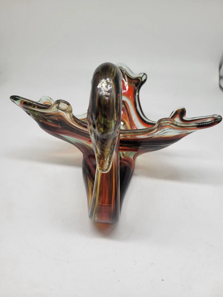 LARGE Brown Orange Mid Century Modern Murano Style GLASS SWAN - Vintage 1970's great no chips or cracks 10.5" by 7"