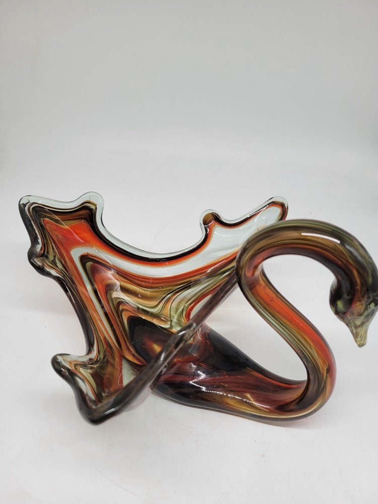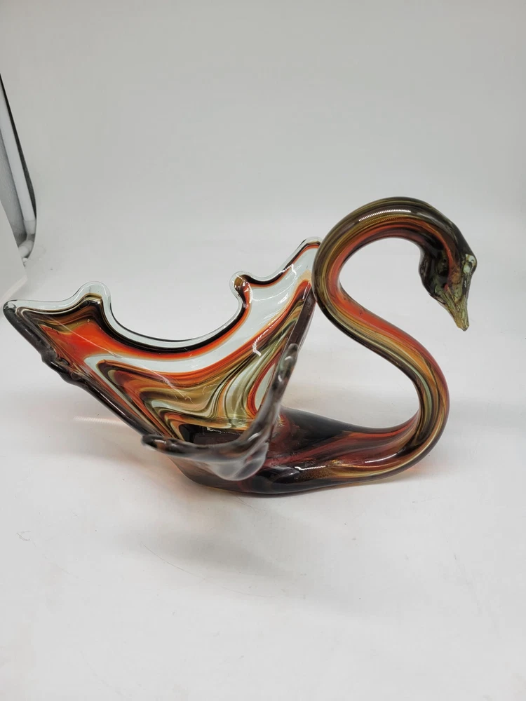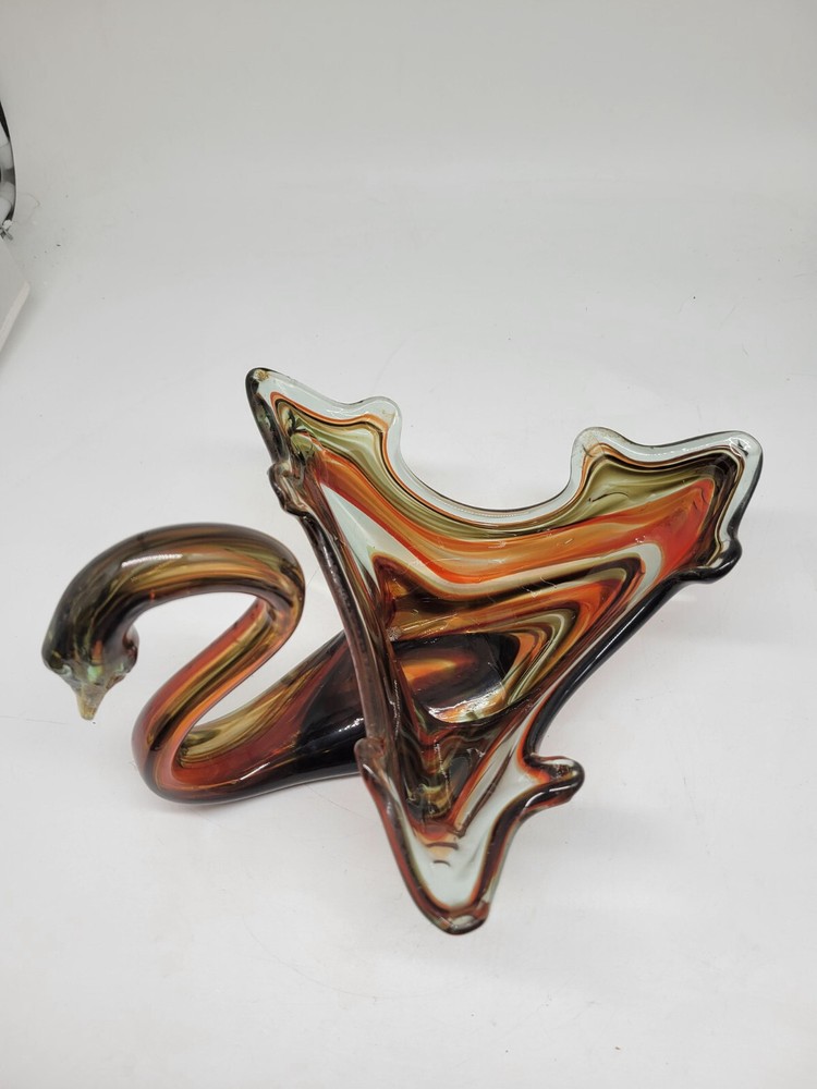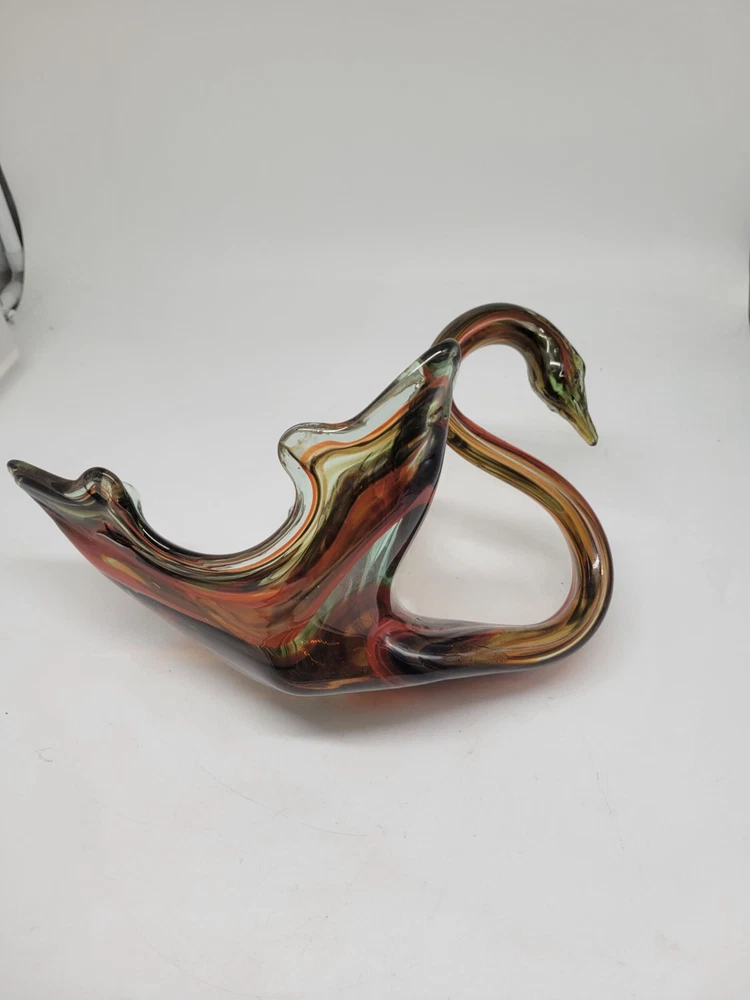 LARGE Brown Orange Mid Century Modern Murano Style GLASS SWAN - Vintage 1970's great no chips or cracks 10.5" by 7"...