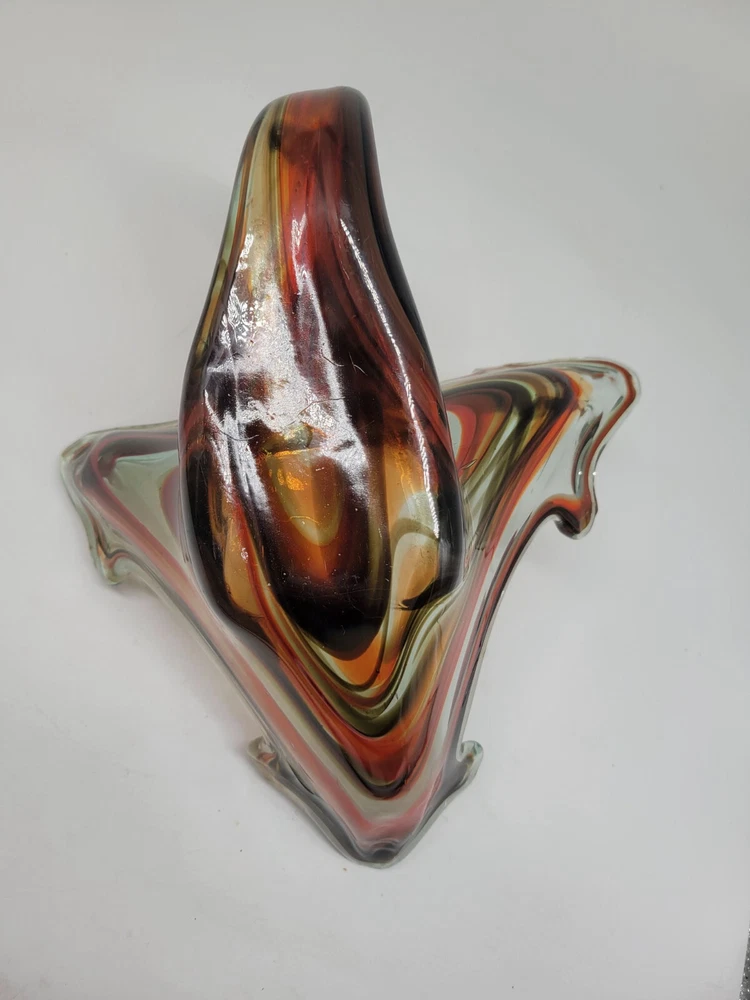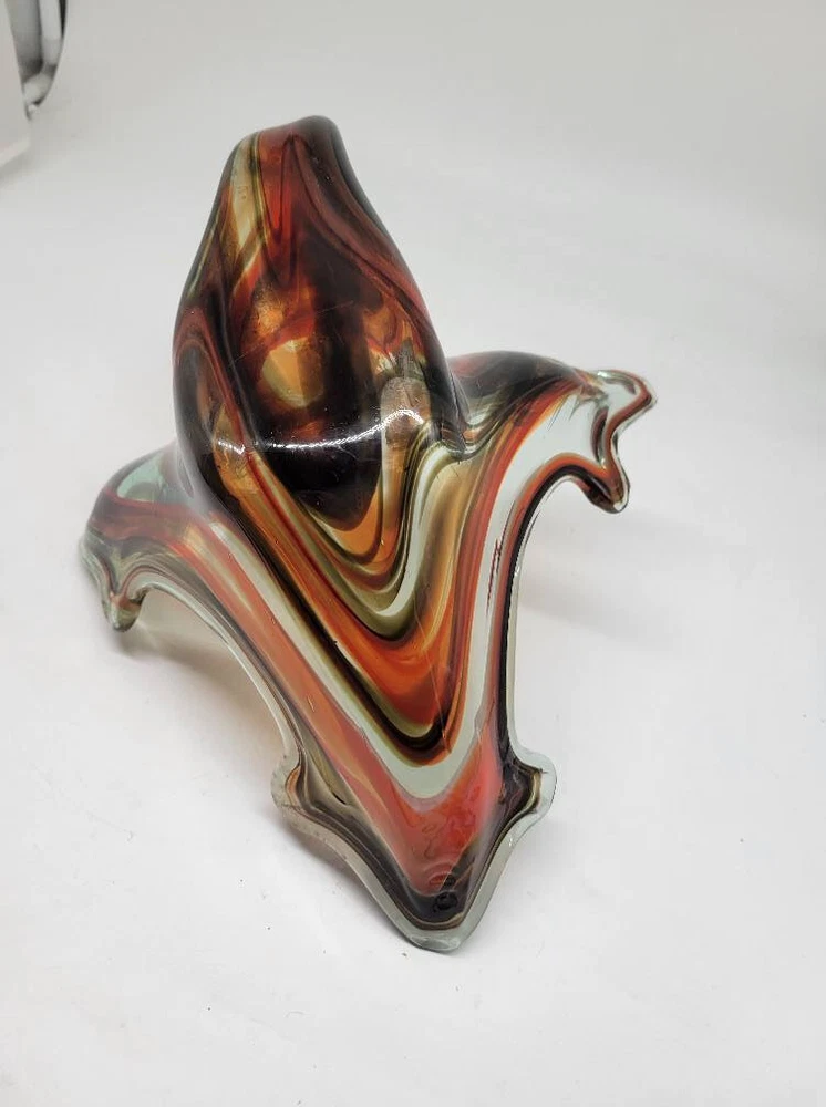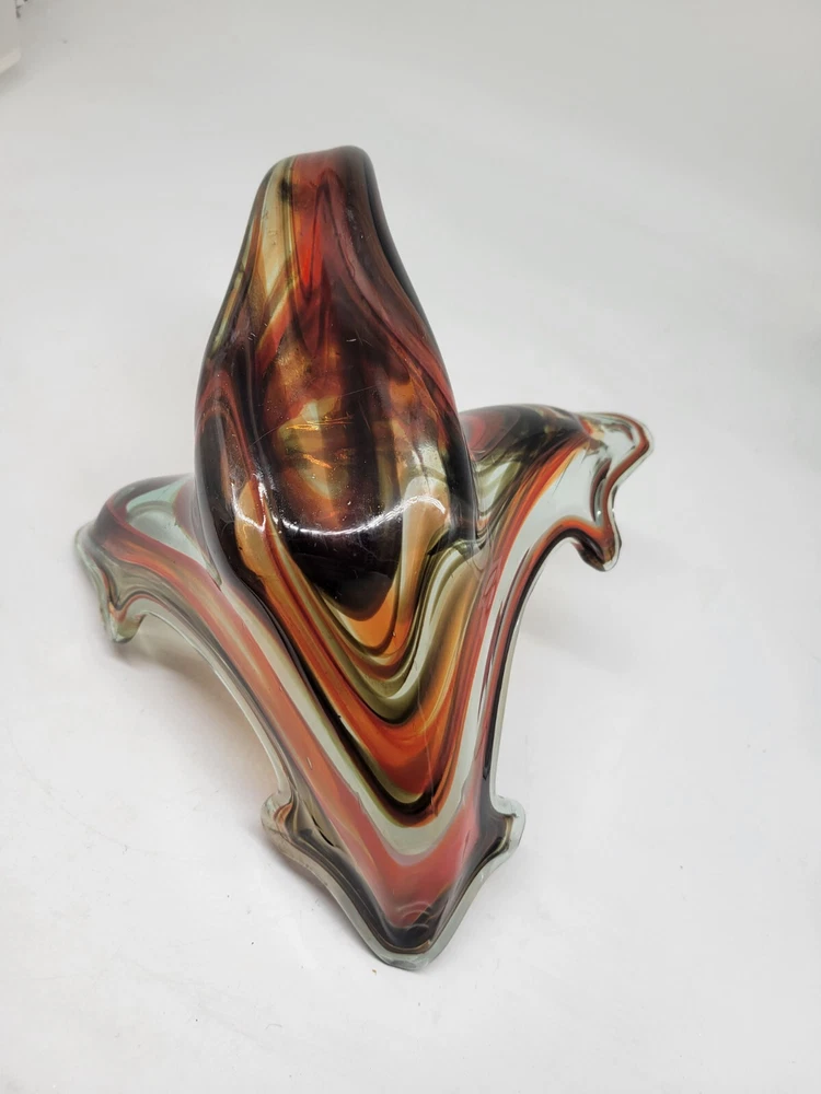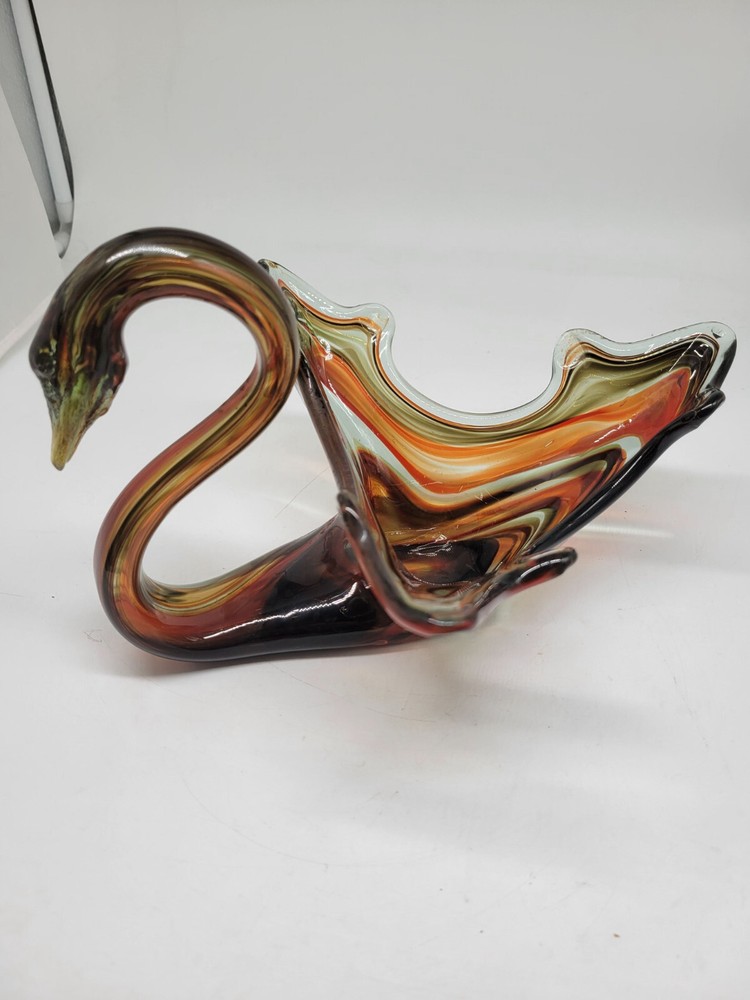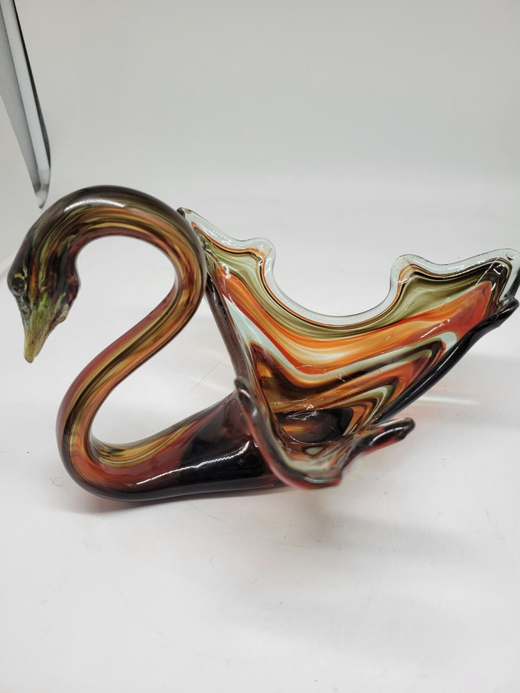 LARGE Brown Orange Mid Century Modern Murano Style GLASS SWAN - Vintage 1970's great no chips or cracks 10.5" by 7"...