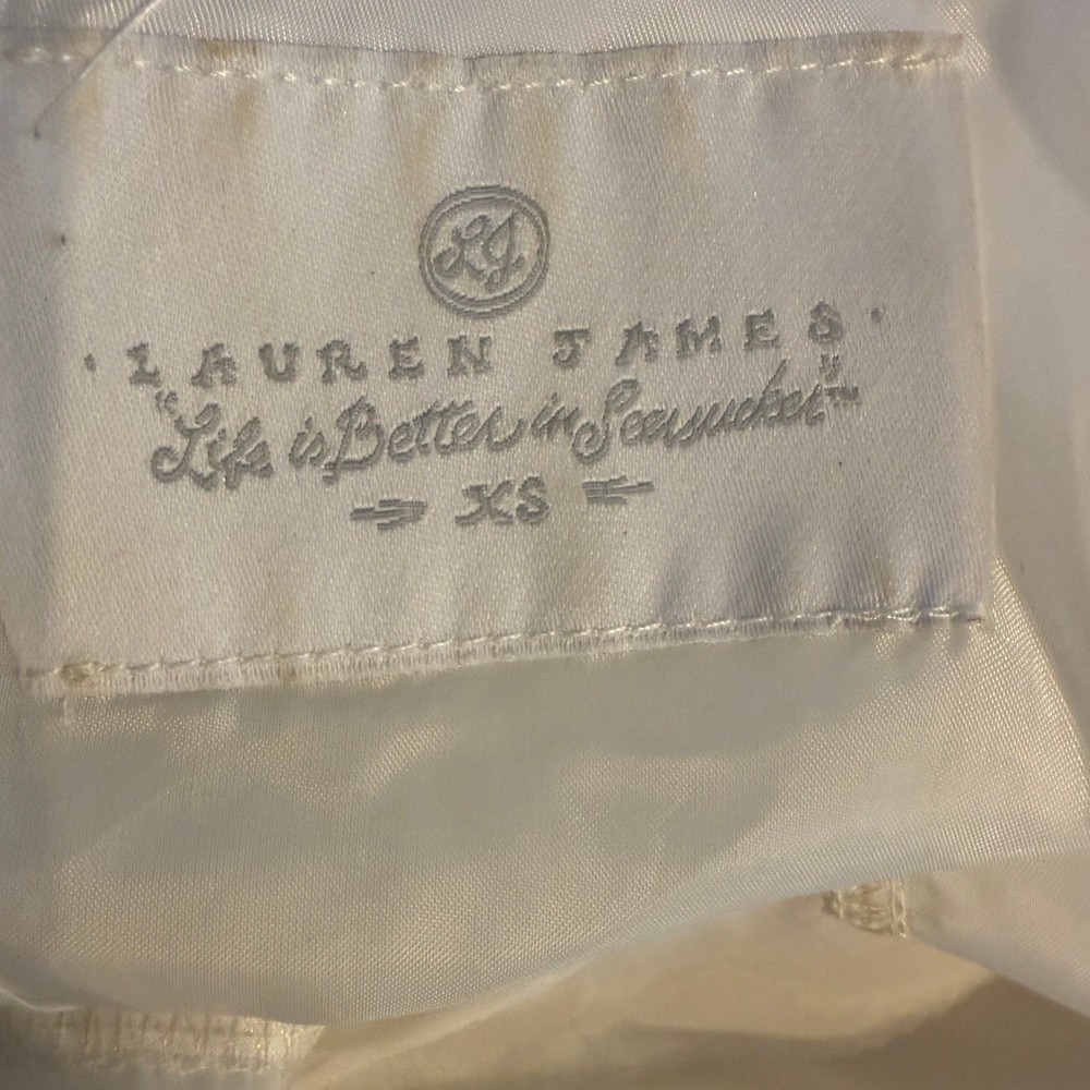 <![CDATA[<div>LAUREN JAMES Sullivan Dress White Open Back Seersucker Cap Sleeve Womens Size XS Armpit to armpit: 17" Shoulder to shoulder: 12" Length: 34" Sleeve: 5" Waist: 26" Hip: 36" - Lined - Button/Zip - Textured We appreciate your support as you shop our listings. At 6ShooterCharlie, we take pride in being a 100% women-owned and operated small business. Our journey began out of a shared concern for the wasteful fast fashion industry, where clothing is often discarded after just a couple of wears. We're committed to providing items that are designed to be cherished for a lifetime. We diligently search through antique stores, vintage markets, and estates to discover remarkable fashion treasures, offering them to you at fantastic prices. Thank you for joining us on this sustainable fashion adventure!