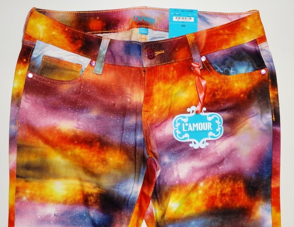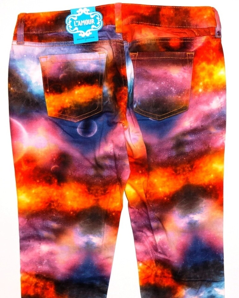 New Stunning L'Amour Nanette Lepore Girls Galaxy Print Denim Leggings Pants Button closure L'Amour's Vibrant Galaxy Print Leggings Purple, Pink, Orange, and more! 5 pocket style -- Mid Rise Example - à >> Size: 3; Inseam 31.5" -- Front Rise approx 7.5" -- Leg openings approx 5" across 98% Cotton / 2% Spandex Machine Wash Retail: $52.00 Feel free to ask us any questions before you order. We do our best to answer promptly. Thank you. G-7-2