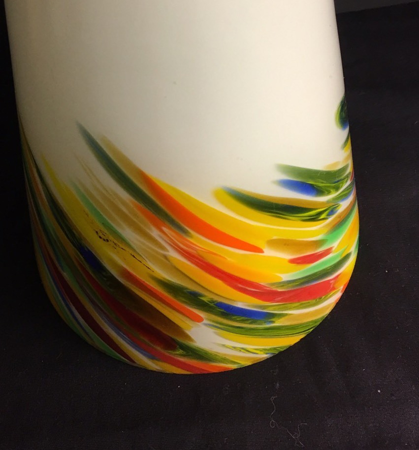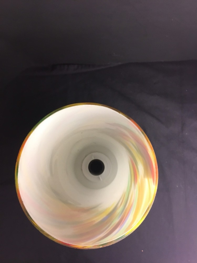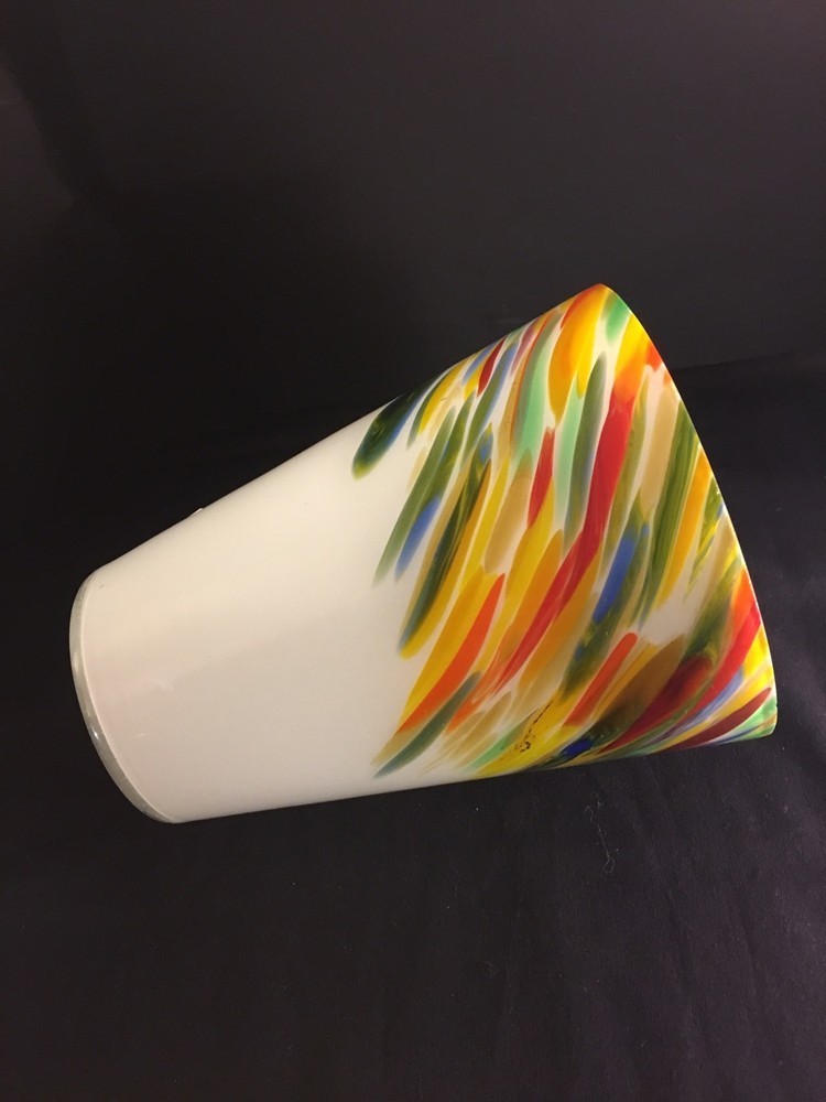 LITEX industries retro GLASS lamp shade white On Oranges & Red Only one! Could be used for art. Excellent glass. Pretty to look at. It is a small glass lamp top, less than 6" circumference at the widest. Please email for exact details..