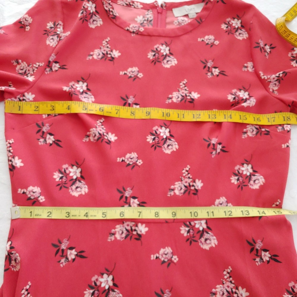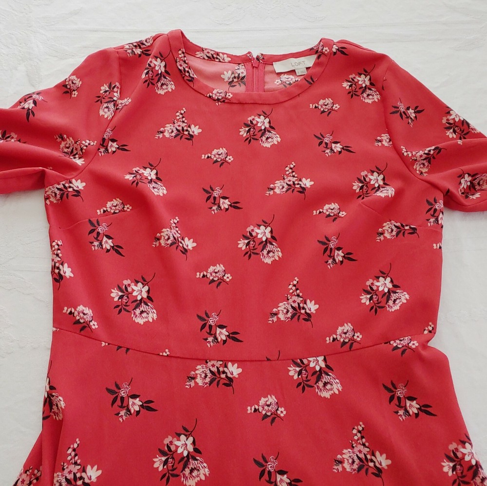 LOFT Adobe Orange Floral Long Sleeve Unlined A-Line Dress Size 8 In great pre owned condition. Please review measurements. Approx. Measurements: Armpit to armpit: 18" Length Back of Neck to Lower Edge: 35" Please look at pictures for measurements and condition. Bx7
