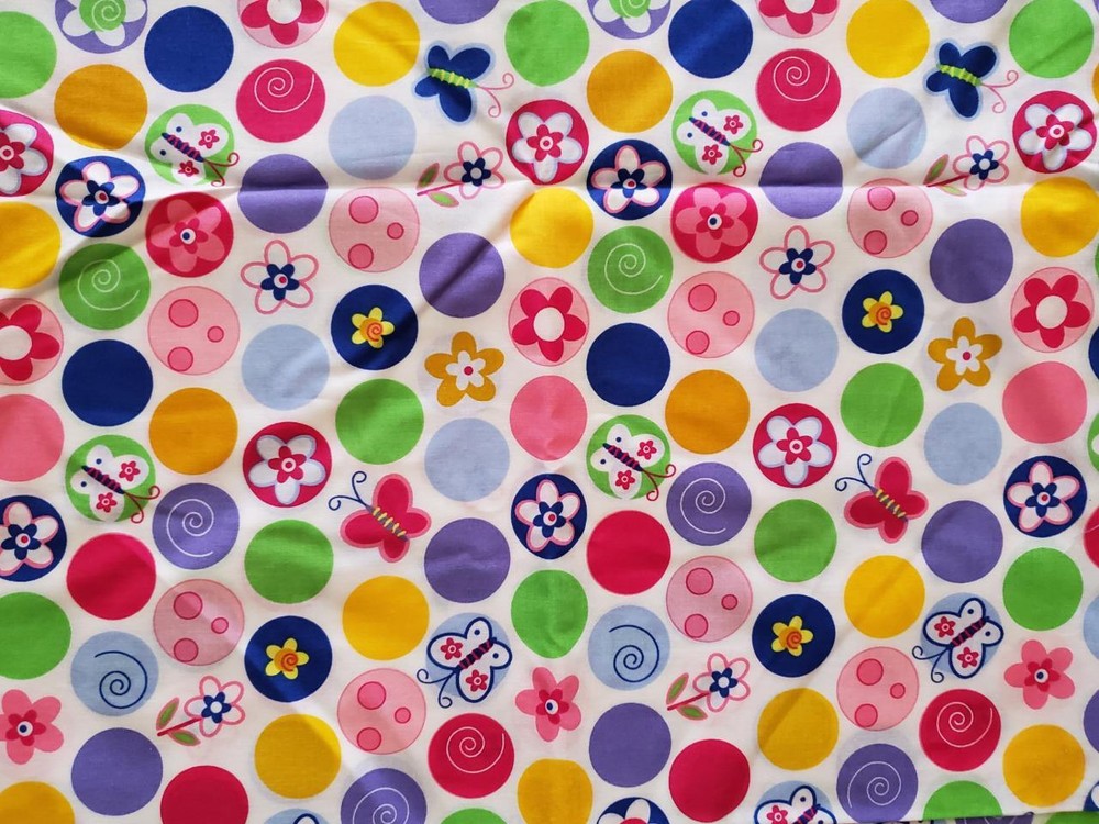 LOLLIPOP DROP FABRIC BUTTERFLIES FLOWERS SPRINGS CREATIVE CP30006 This is for 2.1 yards of 44" wide 100% cotton Springs Creative fabric titled "Lollipop Drop" CO30006 by Mary Jane Mitchell. Springs also printed Daisy Kingdom fabrics. This features dots with butterflies, flowers and swirls. The dots diameter is approximately 1 3/8". This is great for little girls clothing or quilting. This is new, from the bolt. Please pardon the folds, these have been stored in a light and dust free box. I am also showing a photo of this fabric with the coordinate Garden Patch which is in a separate listing. This item comes from a smoke free, dog friendly home. WHEN PURCHASING MORE THAN ONE ITEM PLEASE PUT ITEMS IN YOUR SHOPPING CART AND REQUEST AN INVOICE BEFORE PAYING TO GET THE COMBINED SHIPPING DISCOUNT. COMBINING SHIPPING MAY CHANGE THE METHOD OF SHIPPING. Payment must be received within 3 days of auction end. Shipping and handling are as stated in the listing. Fragile items shipping rate includes insurance. I will combine shipping on items purchased within 3 days of the first item and all items are paid in a single transaction . Combining shipping may change the method of shipping. When purchasing multiple items please put items in your shopping cart and request an invoice before paying to get the combined shipping discount. I ship same day when possible and always within 1 business day of payment (excludes Sunday and holidays). I have no control over shipping time once the item is in the hands of the Post Office/carrier. Some first class mail from San Diego is shipped to another county for processing adding at least one additional day to shipping time . Express Mail is available upon request. Please contact me for pricing. Payment must be received within 3 days of auction end. If purchasing more than one item please put items in your shopping cart and request an invoice to get the reduced combined shipping total. Returns will be accepted only if the item is grossly misrepresented by the seller AND the item is returned in its original condition within 30 days. Be sure to check out my other items. I will be listing many vintage and out of print patterns including Vogue as well as fabrics suitable for garments, doll clothes, smocking and quilting. You never know - I might have just what you are looking for! Thanks for stopping by and Happy Sewing! Please contact me if you have any questions. I strive to list each item accurately and make each transaction a positive experience. I do occasionally make a mistake or overlook something. Please contact me if there is any problem with your item. Positive feedback is always appreciated and all feedback will be returned. Pictures sell! Auctiva offers Free Image Hosting and Editing. 300+ Listing Templates! Auctiva gets you noticed! The complete eBay Selling Solution. Track Page Views With Auctiva's Counter