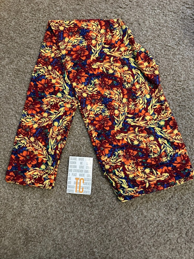 Elevate your casual wardrobe with these beautiful LuLaRoe TC leggings. The vibrant orange and yellow botanical print is perfect for any occasion, whether you're running errands or meeting up with friends. Made from a comfortable blend of polyester, spandex, and polyester blend fabric, these leggings are machine washable and feature stretch for added comfort. The ankle style and plus size type make these leggings perfect for any body type, while the vintage and blended fabric type add a unique touch to your outfit. Whether you're a fan of floral patterns or just looking for a stylish and comfortable piece of clothing, these LuLaRoe leggings are a great choice.