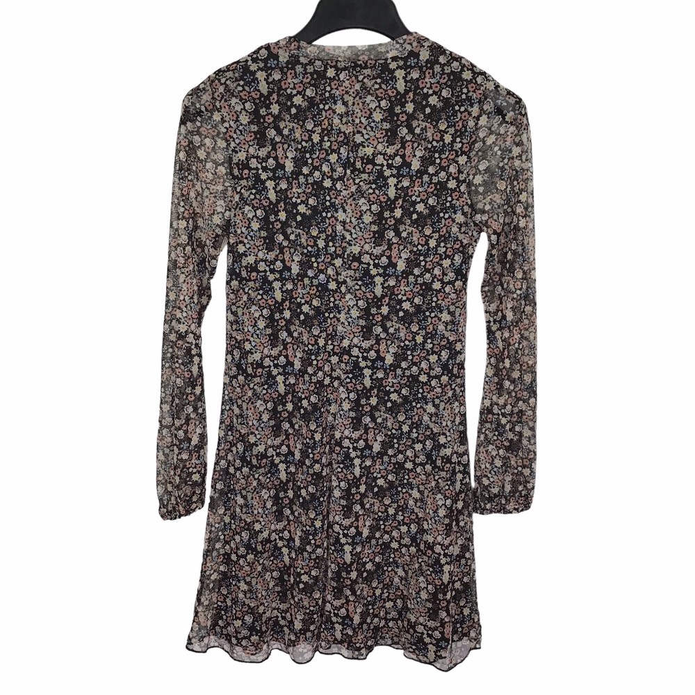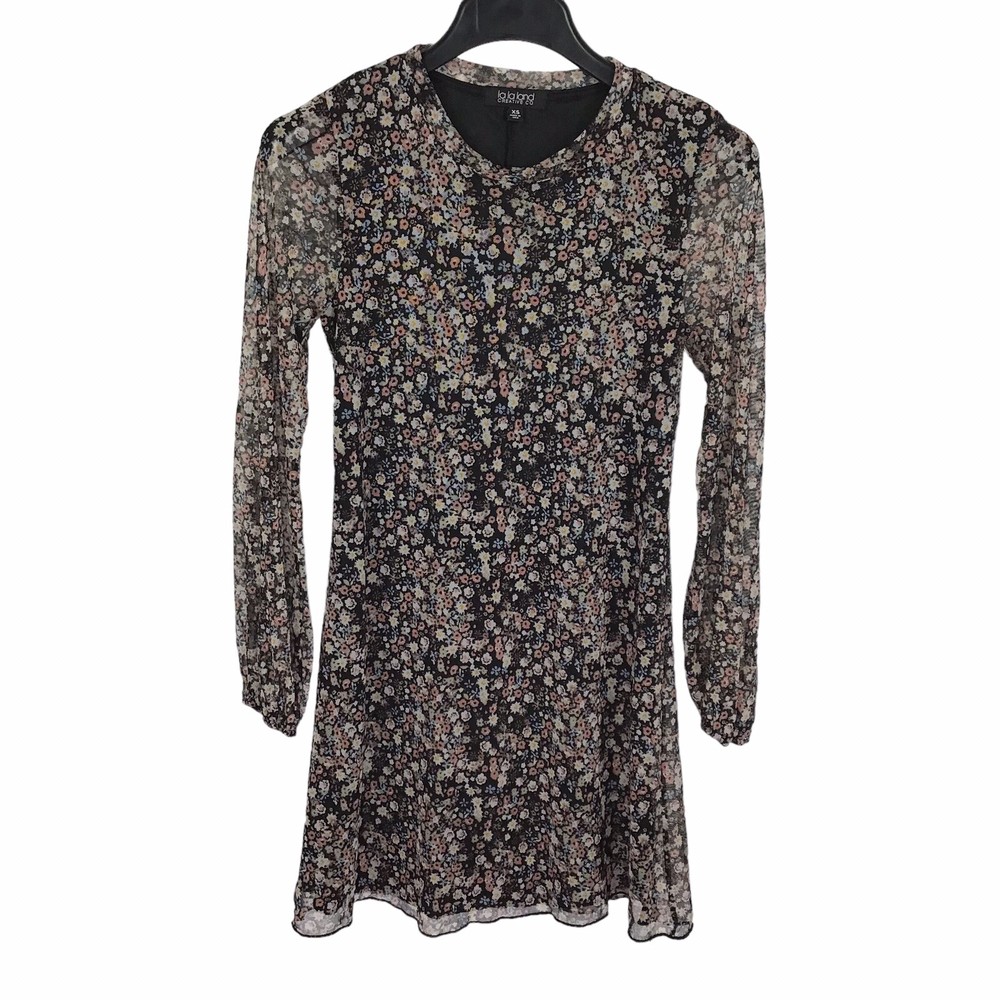 La La Land Creative Co Floral Dress Balloon Sleeve Mesh Size XS Pink, Black New with tags Approx. 15" across chest, 23" sleeve, 32" back length Black with pink/white floral print. Sheer Mesh long balloon sleeves. Lined with mesh overlay. Lightweight. Sheath dress. Polyester/spandex MSRP $45 Size: XS Tags: boho, retro, punk rock, casual dress, mini, floral, mesh, colorful, Nordstrom