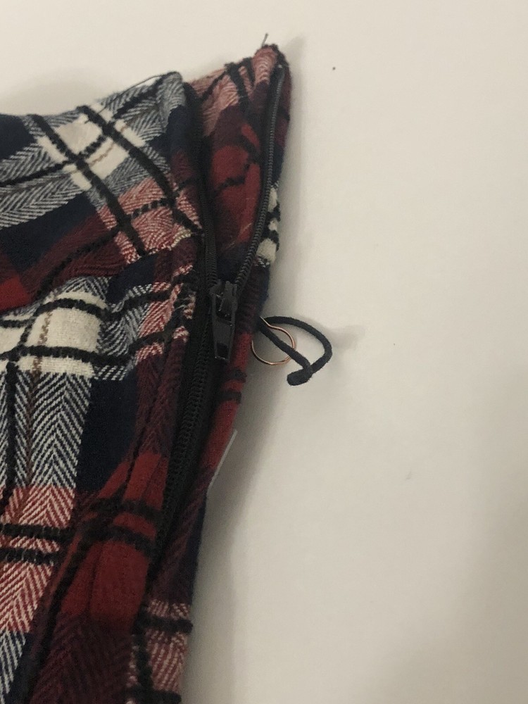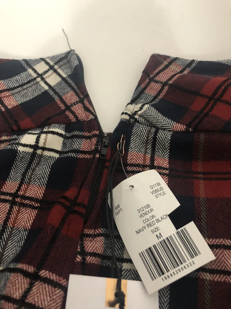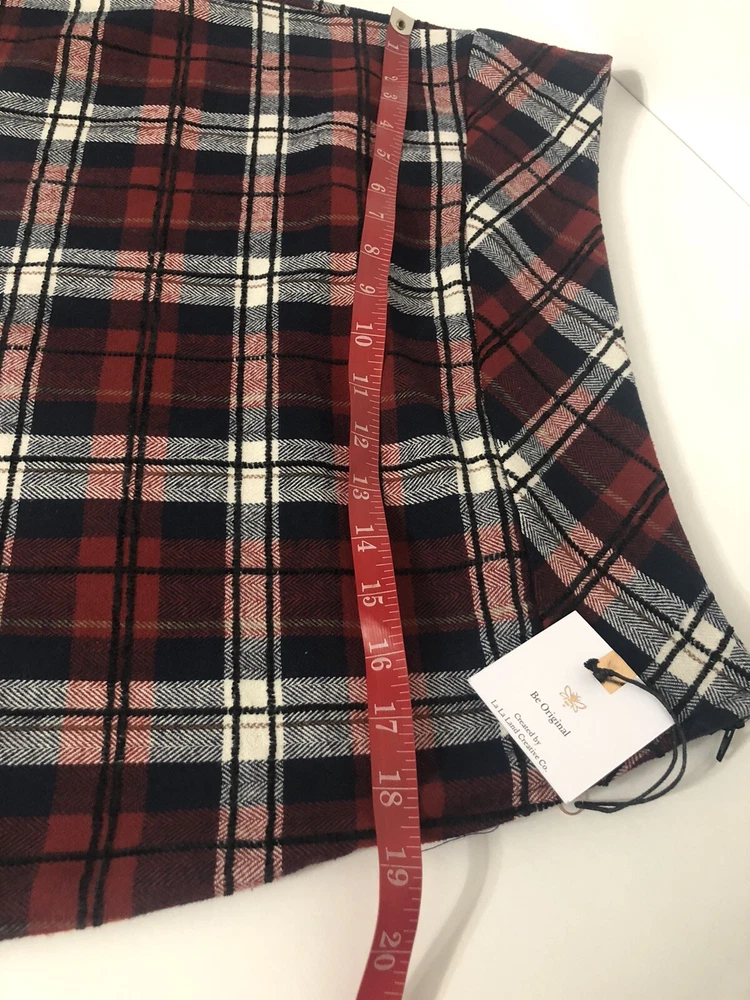 La La Land Creative Co. Navy Red Black Flocked Plaid Mini Skirt (Juniors) Size M Details Approximately 14”M( based on size M ) Side zipper 100% cotton Machine wash Made in the USA Department: Juniors Style: G1139V080J A.C.