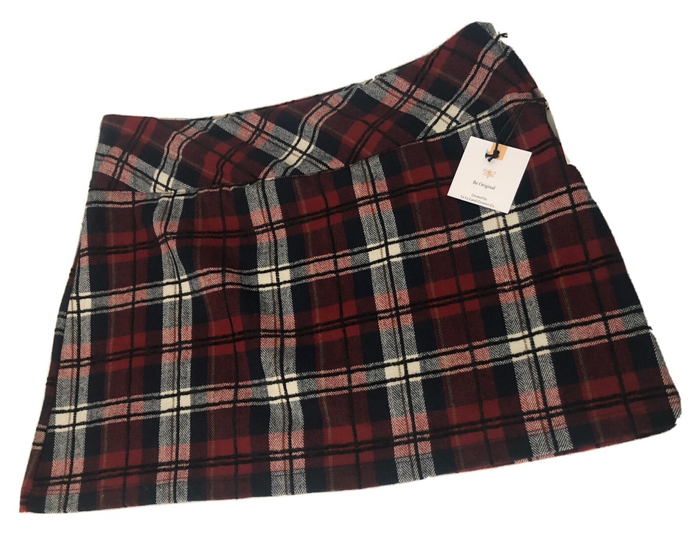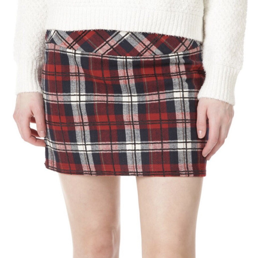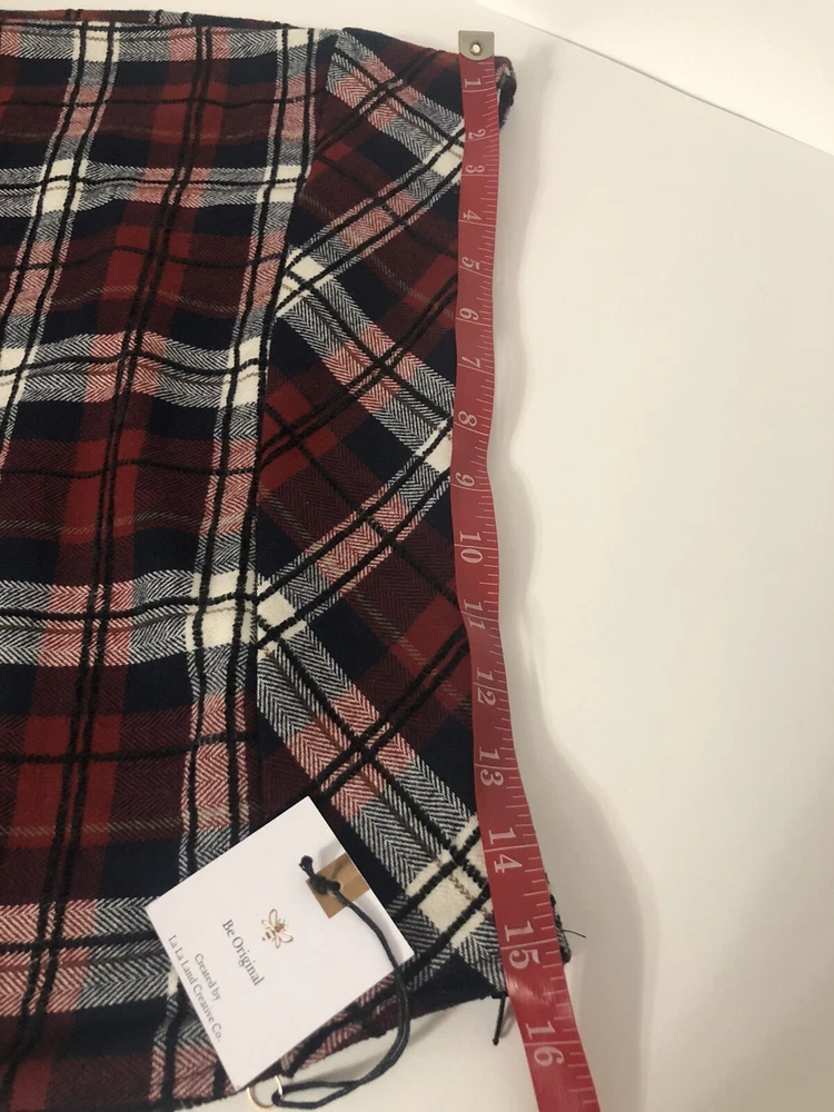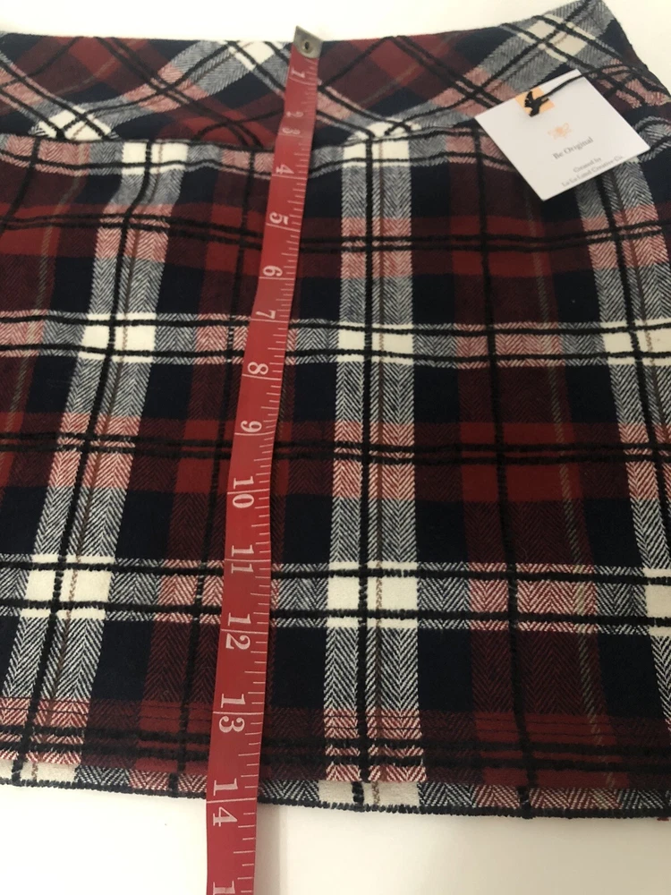 La La Land Creative Co. Navy Red Black Flocked Plaid Mini Skirt (Juniors) Size M Details Approximately 14”M( based on size M ) Side zipper 100% cotton Machine wash Made in the USA Department: Juniors ...