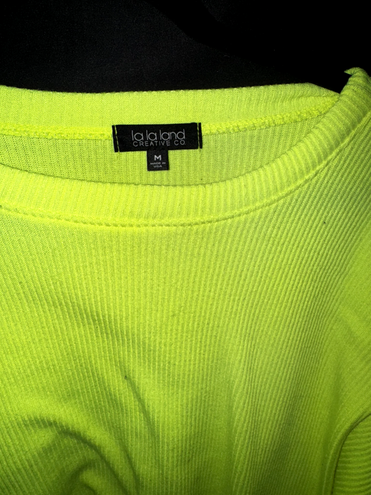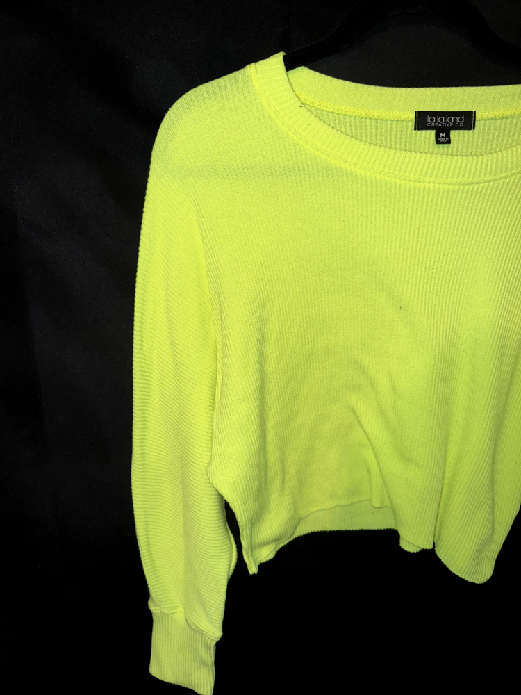 Wrap yourself in the vibrant warmth of the La La Land Creative Co Neon Yellow Sweater, an eye-catching addition to your wardrobe. Designed with a regular fit, this women's medium-sized pullover ensures comfort and style without compromising on elegance. Its long sleeves provide a cozy feel, perfect for cooler days or cozy evenings at home.Crafted with care, the sweater features a bold neon hue that's sure to make a statement, whether you're out for a casual coffee date or a relaxed office setting. 📦 Fast Shipping: Ready to ship promptly to add this versatile piece to your wardrobe.