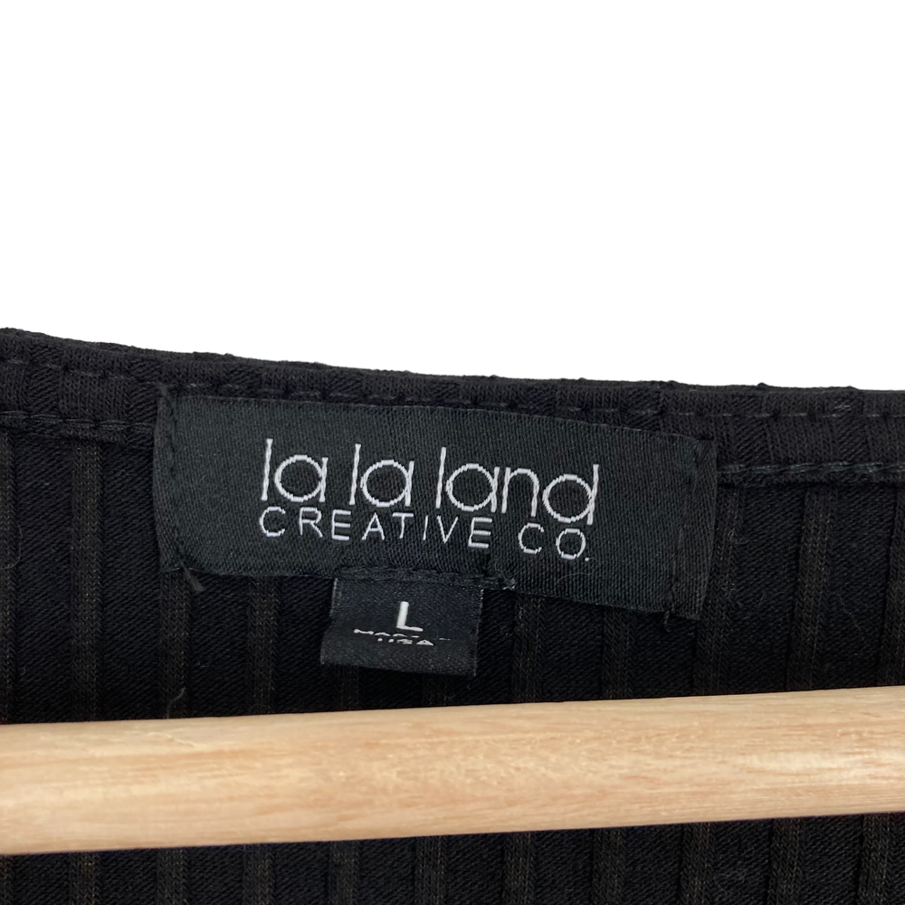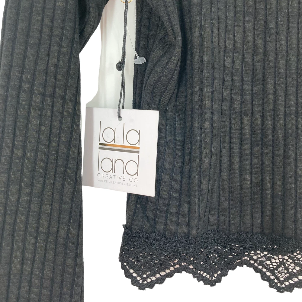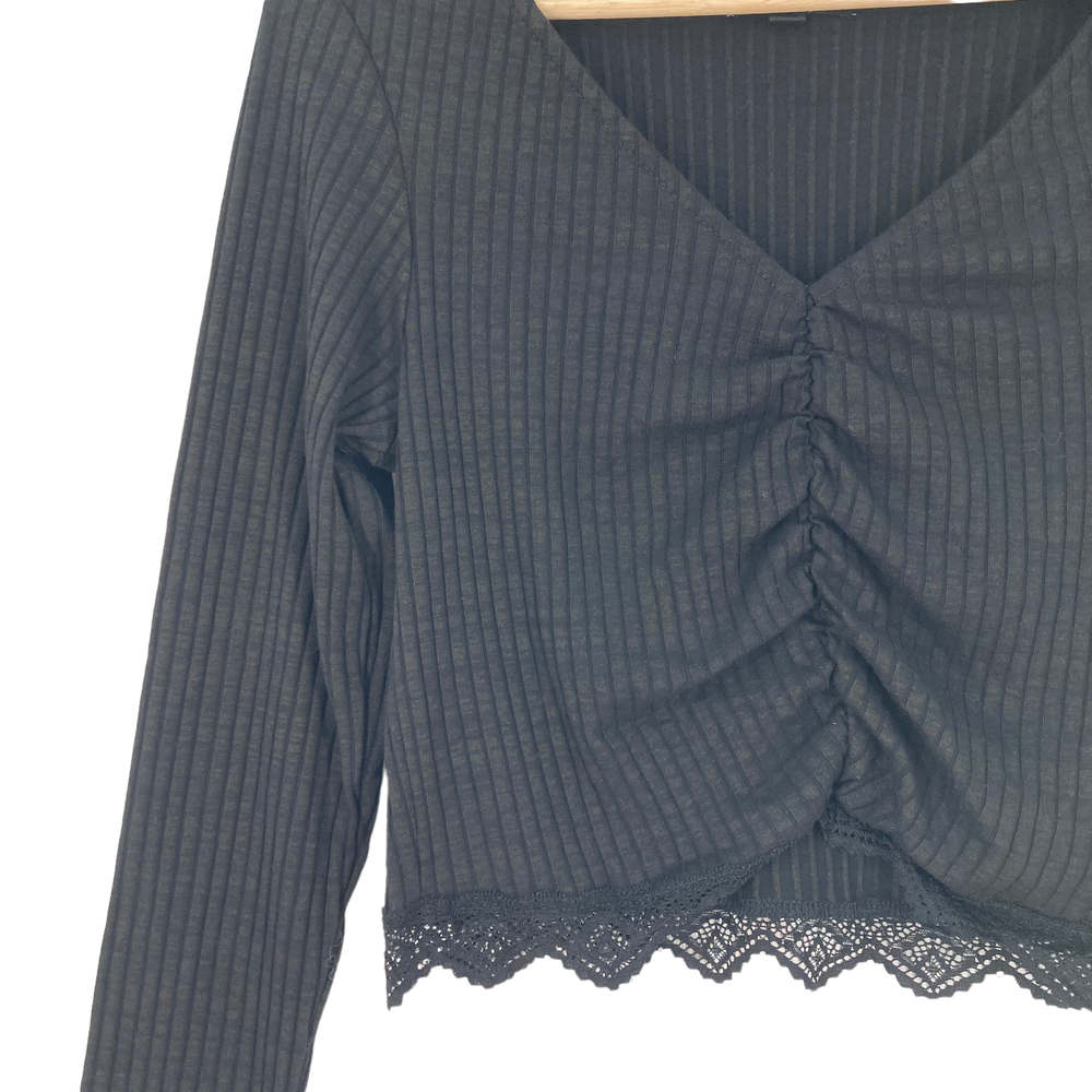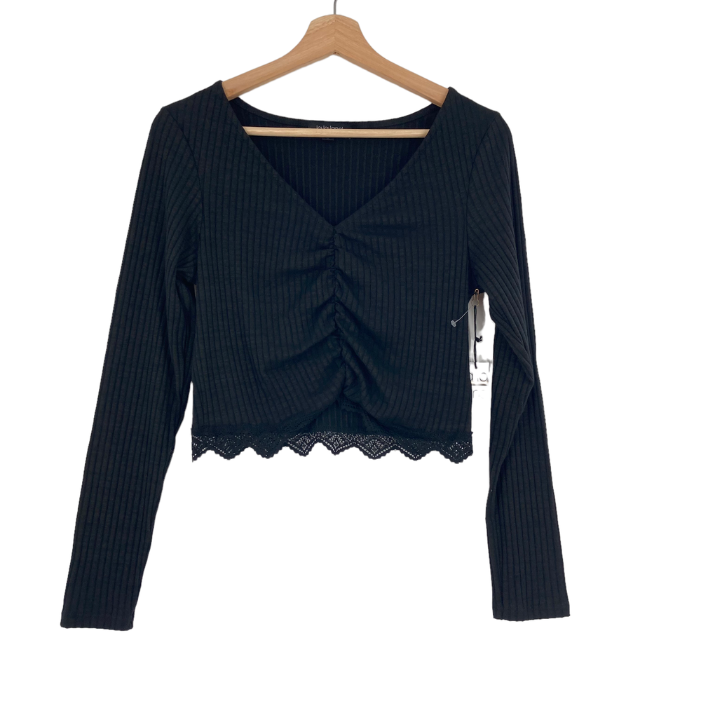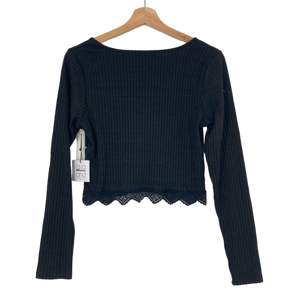 La La Land Creative Co Ribbed Lace Trim Long Sleeve Crop Top in Black. PAL1500...