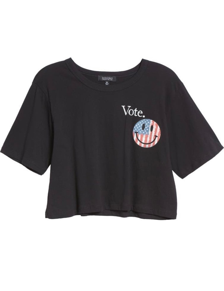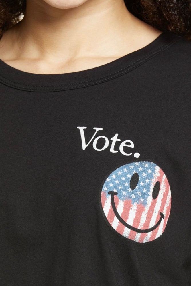 La La Land Creative Co Vote Graphic Tee NEW WITH TAGS. Size : Small. Color : Black. MSRP : $29.00. A jersey-knit boxy-fit tee featuring a chest "Vote" graphic and the United States flag smiley face detail. • 18" length (size Medium) • Ribbed crewneck • Short sleeves • 100% cotton i