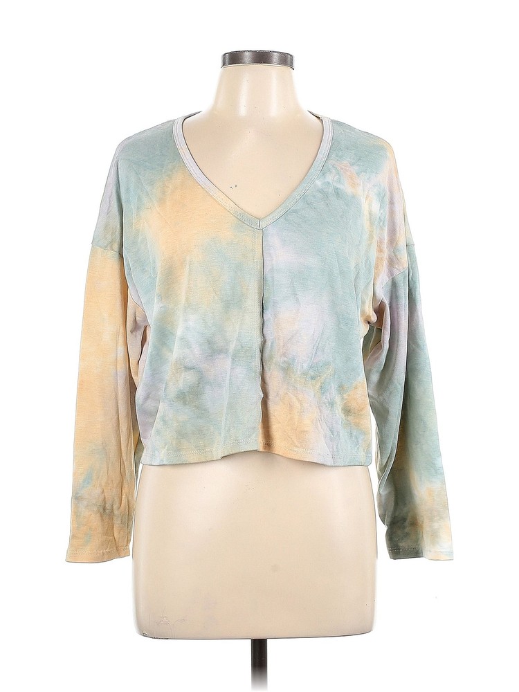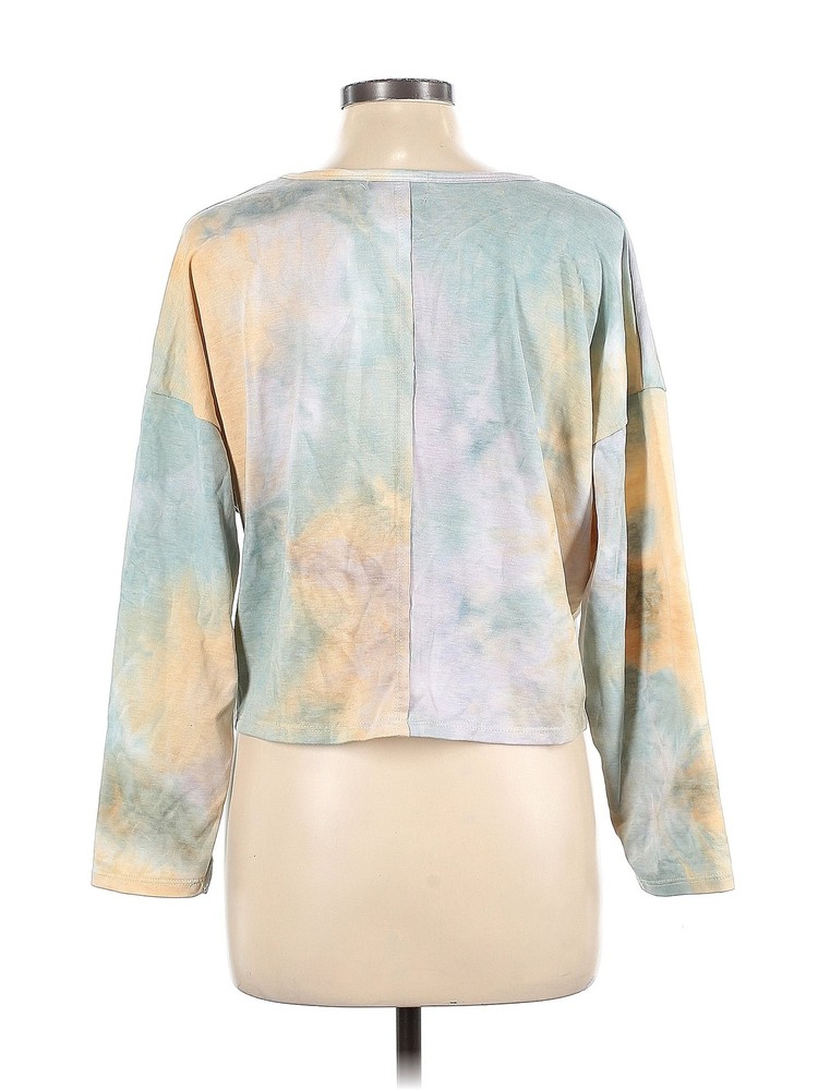 Absolutely loving this tee! The soft fabric feels amazing, and the tie-dye teal color is so unique—perfect for adding a pop of style. The fit is comfy yet flattering, and it’s in flawless condition, just like new. Great quality for the price, and the long sleeves make it versatile for any season. Such a fun find!