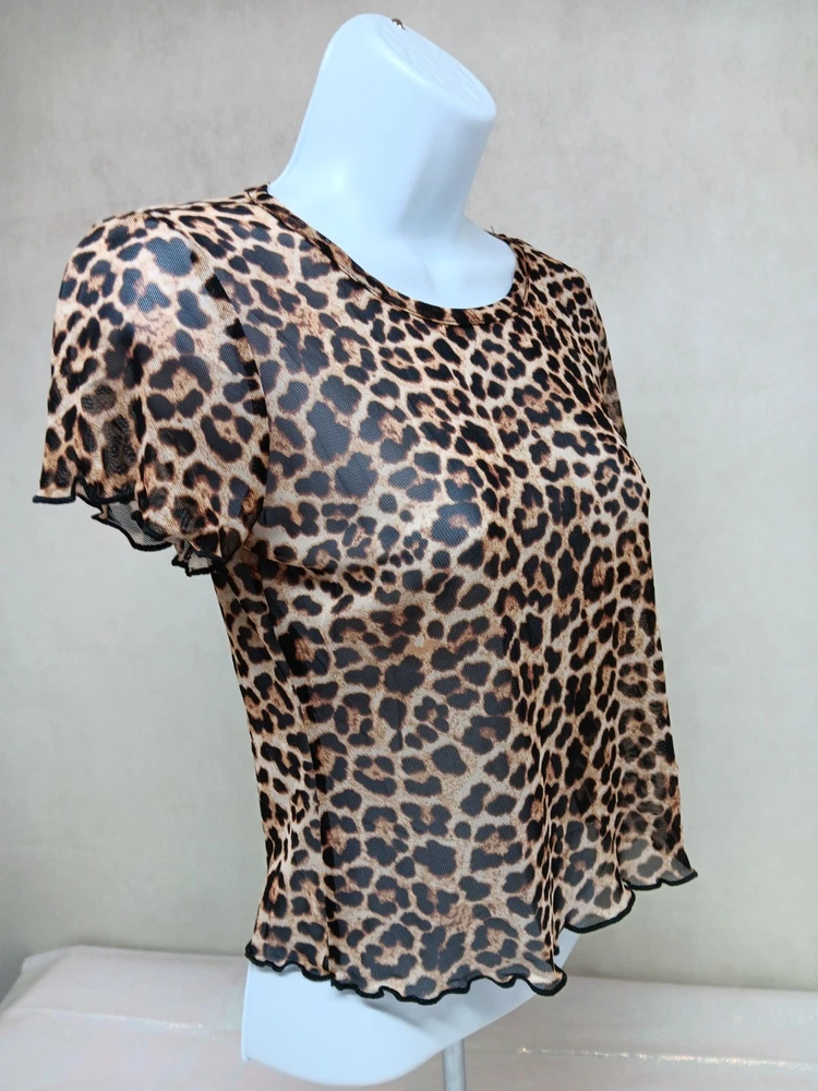 This top is a total game-changer! The animal print is bold yet classy, and the mesh fabric keeps it breathable without sacrificing style. It’s super flattering and pairs perfectly with high-waisted jeans or a skirt. The fit is just right—snug but comfy—and the cropped length adds a fun, trendy touch. Perfect for nights out or casual wear, it’s a must-have for any fashion-forward wardrobe!
