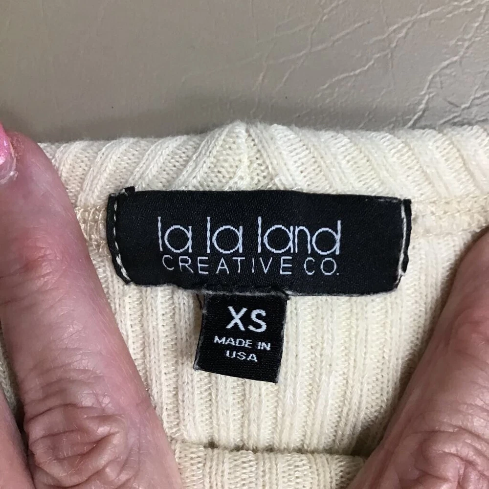 La La Land Creative Co. Womens Crop Pullover Sweater Beige Ribbed Stretch XS New Brand: La La Land Creative Co. Size: XS Style: Pullover Sweater Color: Beige Material: Cotton Blend Pattern: Solid Sleeve Length: Long Sleeve Sold as pictured. Thanks for looking! Smoke and Pet Free Boutique Buy with Confidence - I have been an eBay seller for 20 years! Ask Questions! This listing was easily created using the SellHound Posting App! All pre-owned clothing has been steam cleaned and/or washed according to eBay's standards.