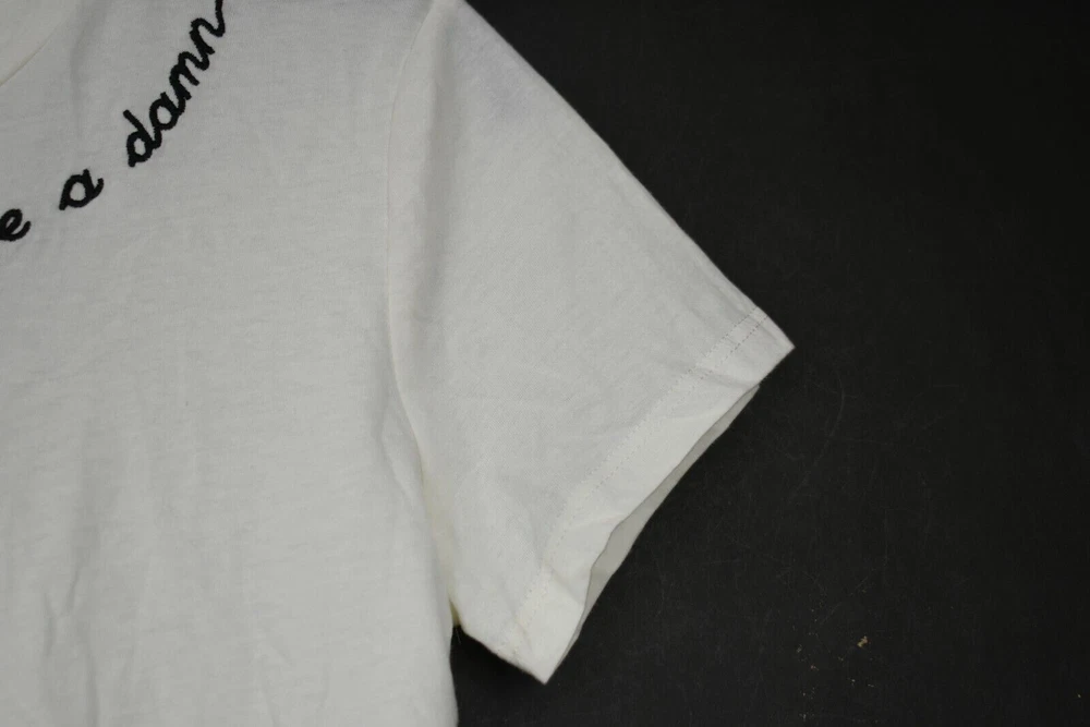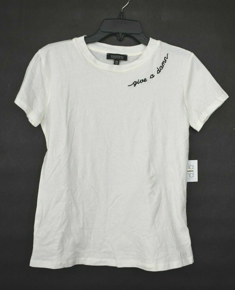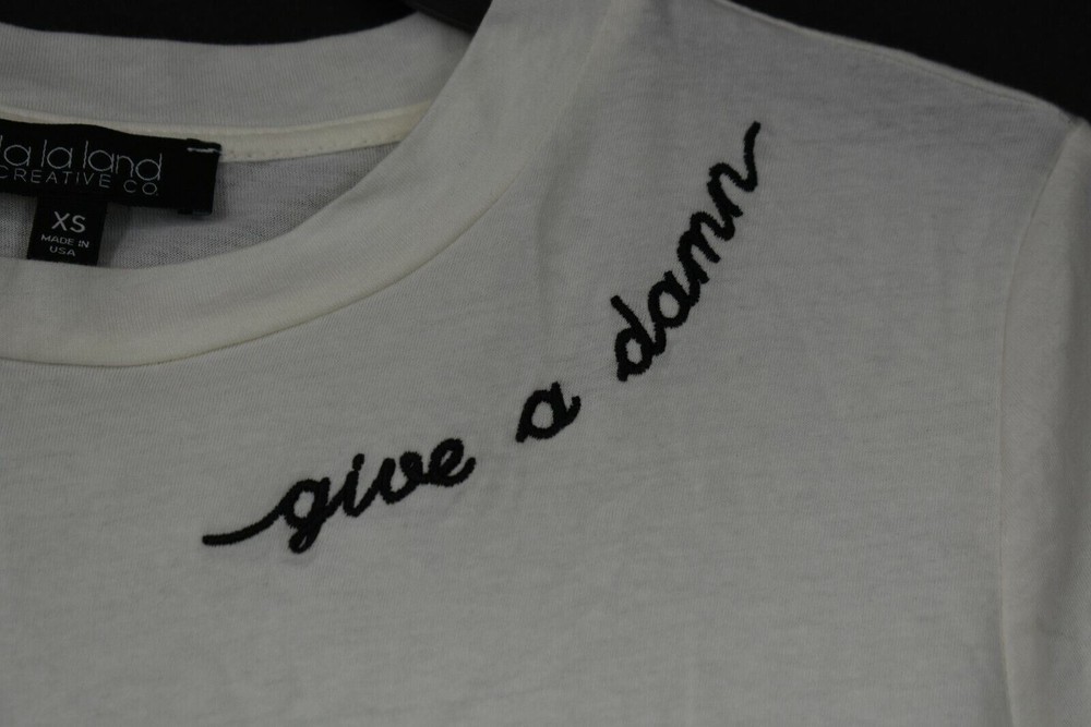 Bi-State Sales Shop our store La La Land Creative Co Womens Ivory Give A Damn Embroidered T Shirt Cotton XS SIZE INFO True to size. XS=0-2, S=4-6, M=8-10, L=12-14. Ivory with black embroidery writing Crew Neck Short sleeves 100% cotton Machine wash, tumble dry Made in the USA Measurements in inches: Size Length Chest width XS 23 16 All measurements are approximate. We are human and sometimes a measurement may be off by a very small amount. The measurements are of the item listed. See photos for details about condition, and any flaws the item may have. The item photographed is the item you will receive. Payment Policy Please Make all Payments Immediately. Payments must be made via PayPal before orders are shipped. If you have an international order outside of Global Shipping Program, please wait for in invoice and complete payment. Minimum International Shipping rates start at $27.50. Why Shop with US? Customer Service is our #1 Priority Excellent Pricing Excellent Feedback Quality Assurance Fast Shipping Return Policy Free returns! If an item is being sold as-is, the return options may differ. Feedback If you are completely satisfied with your purchase please leave us positive feedback. If there is an issue with your order, please understand we are human and we do make mistakes. Please send us a message and give us a chance to resolve before returning or opening a dispute with eBay. Shipping Policy We will ship almost all items within 1 business day. All items ship from Blue Springs, MO and take 2-5 days depending on shipping service. On rare occasion, USPS or FedEx may delay a package. Please understand this is out of our control. If you order/pay before 12 PM CST we will try our best to get your package out same day. If you would like an express delivery option, please message us before purchasing, we can update the listing to reflect an express option. (Additional Shipping charges will apply) Disclaimer BI-STATE SALES is not sponsored by or affiliated with the brands associated with the products being sold. Furthermore, there is no guarantee or assumption that we can provide support or offer any warranty on this product after purchase. Bi-State Sales Copyright © Bi-State Sales Listing and template services provided by inkFrog