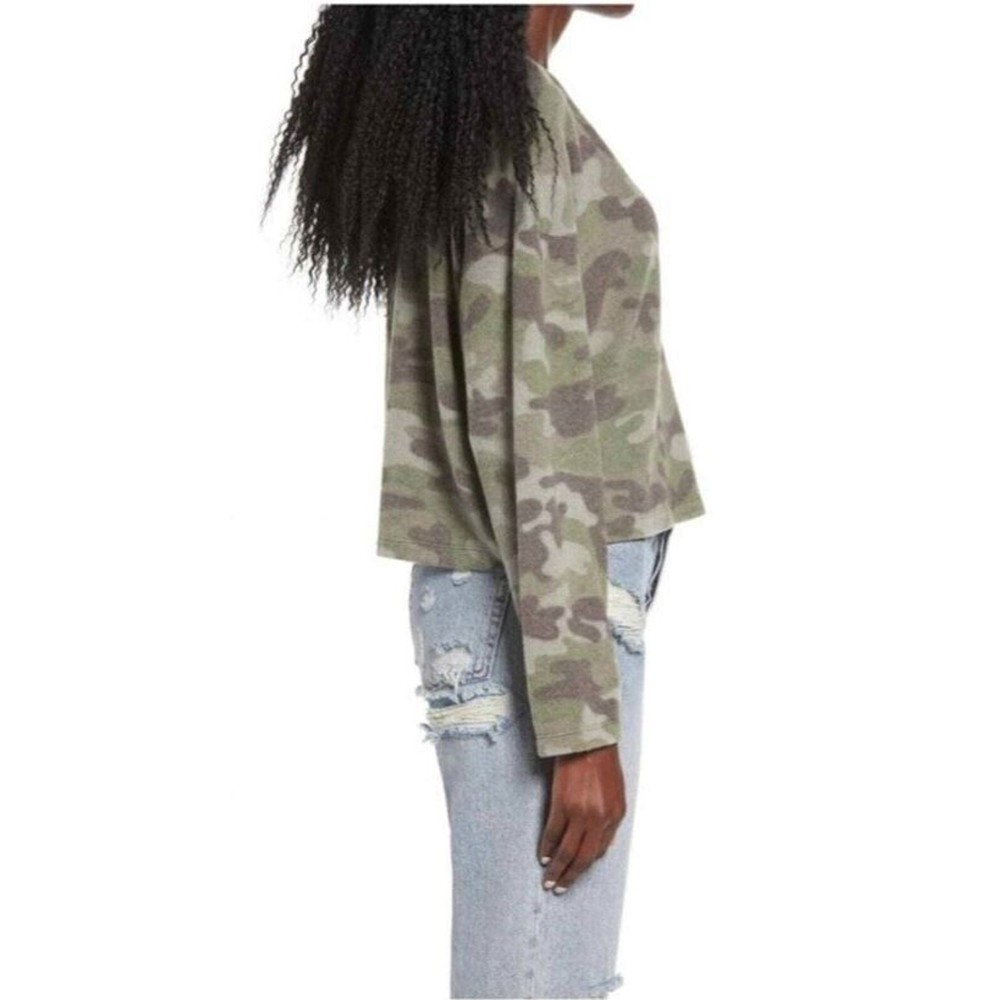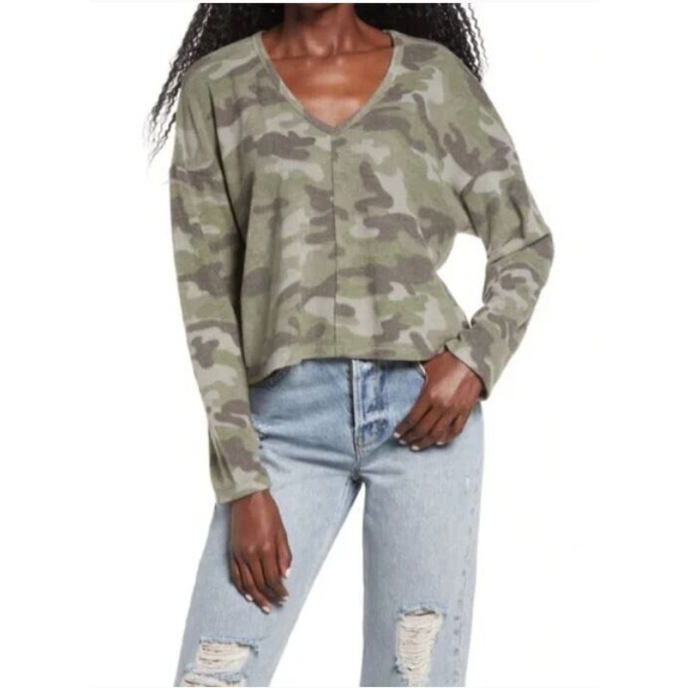 <![CDATA[<div>Classic camo elevates this V-neck top in a boxy silhouette that's perfect for the weekend. * V-neck. * Arm Pit to Arm Pit 22" * Length 19" * Long sleeves. * Slightly cropped fit. * Made ...
