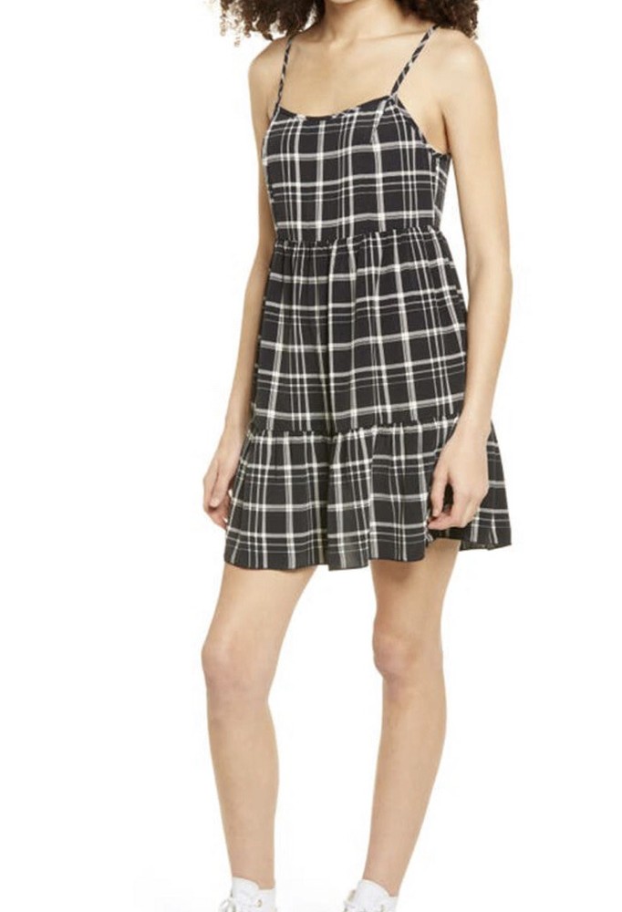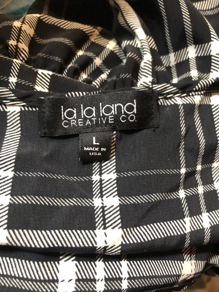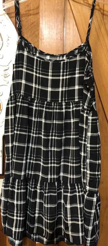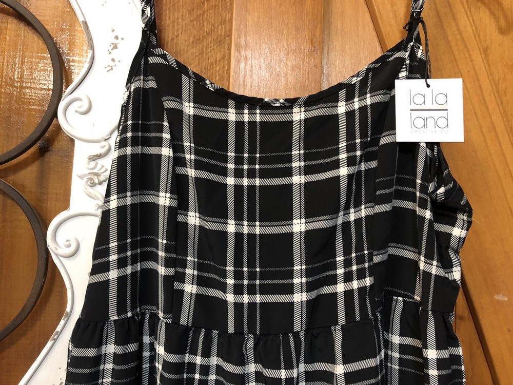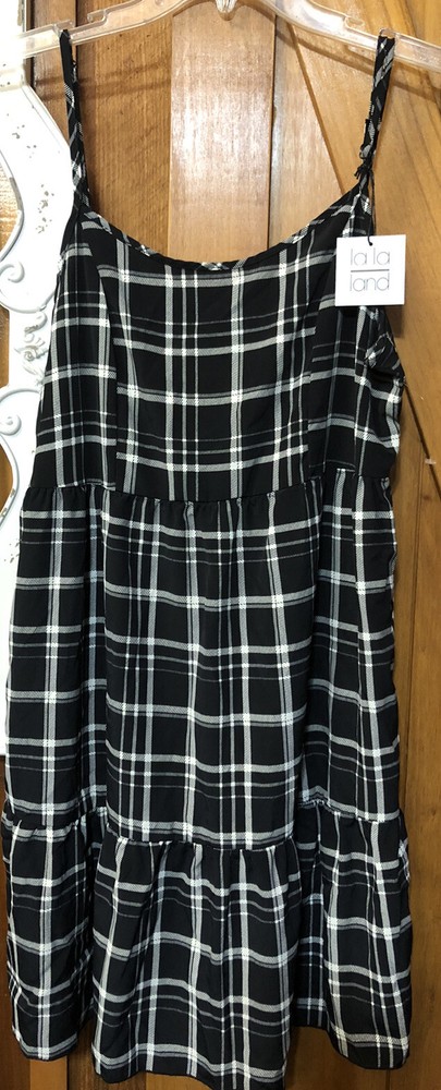 La La Land Creative Co Womens Plaid Dress Size Large L Black and White A Line. Straps are adjustable