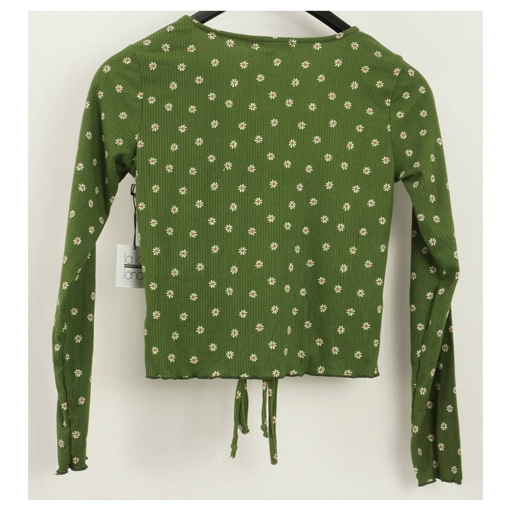 <![CDATA[<div>La La Land Creative Co Women's Ruched Crop Top - NEW, NWT, New with tags - Size: Medium - Color: Sage Floral/green with white and yellow daisies - Crop top - V-neckline - Ruched front with adjustable drawstring - Lightweight polyester rib knit - Lettuce edge waist - Long sleeves with lettuce edges - Very soft and comfortable - Business casual, casual, preppy, leisure, date night, night out, lounge wear - Great for layering - Packs and travels well - Spring summer fall winter Measurements: Pit to Pit 16" Nordstrom Rack A144MI172JD RN 157389 Please note any color differences in photos are due to lighting.