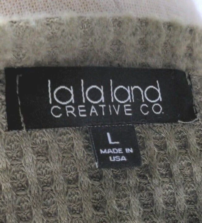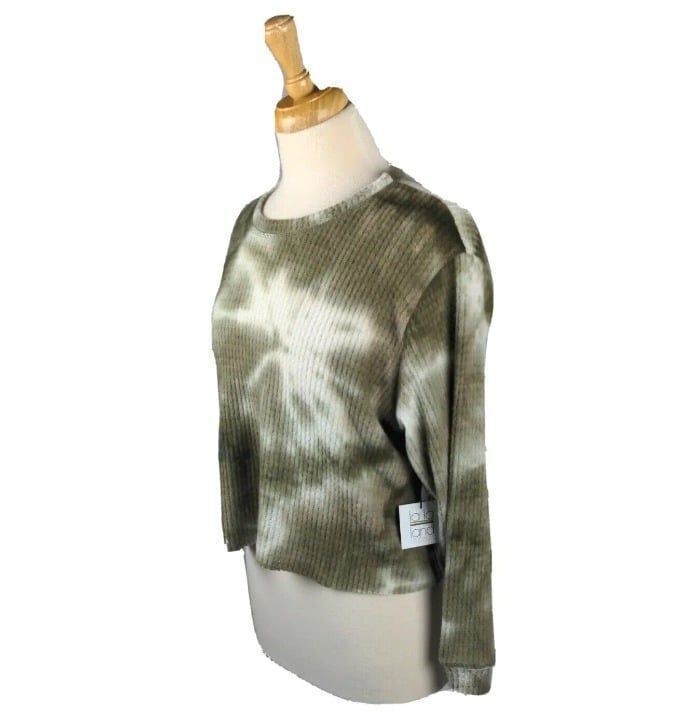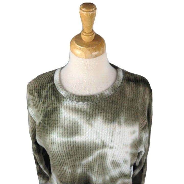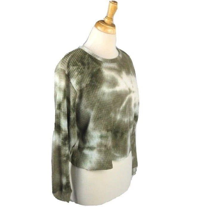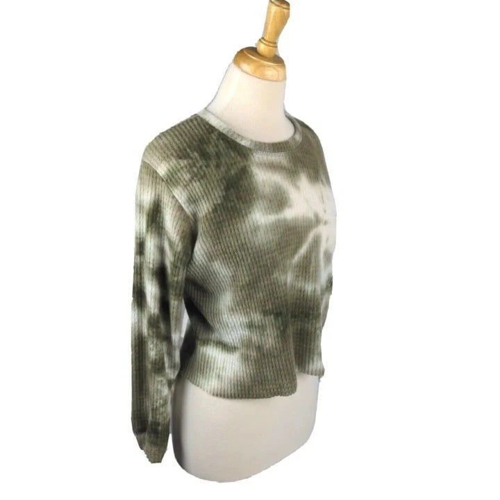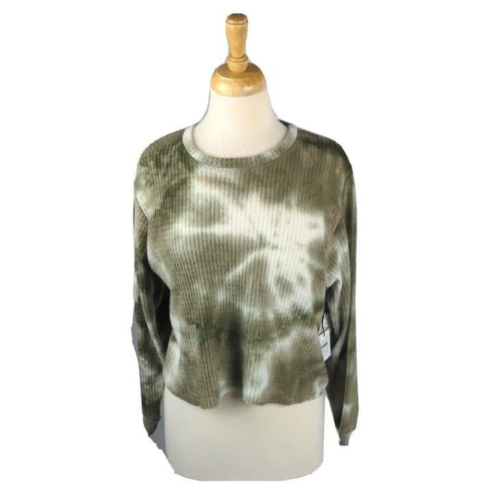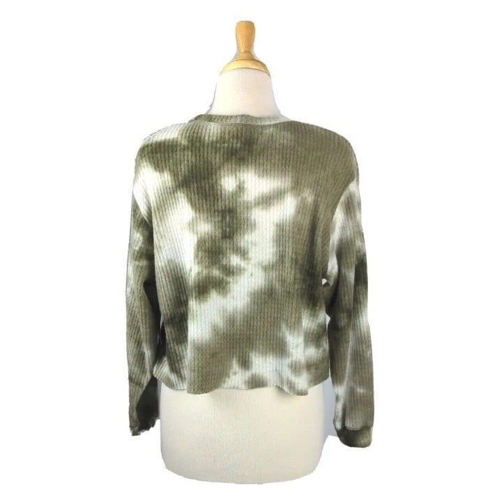 La La Land Creative Co Tie Dye Waffle Top Green L - NEW Boxy and cropped, this cozy, long sleeve waffle knit top is ready to take your off-duty uniform up to an 11 on the comfort scale. Crewneck Long sleeves 96% polyester, 4% spandex Machine wash, tumble dry Made in the USA Armpit to Armpit: 22" Length: 19" New with Tags MSRP: $49.00