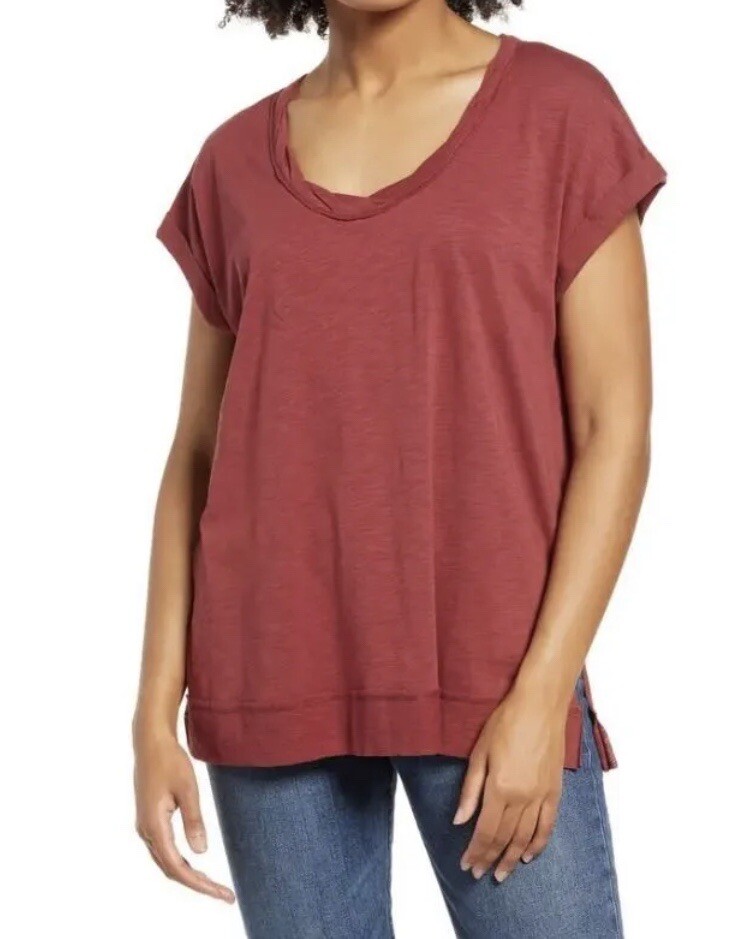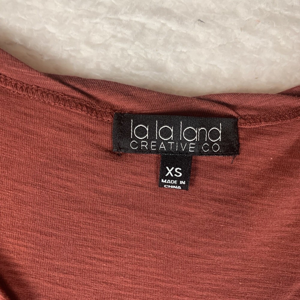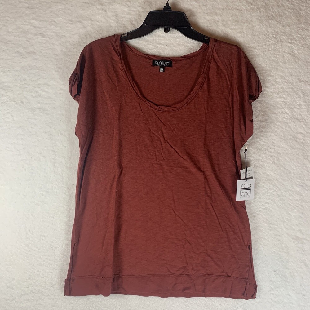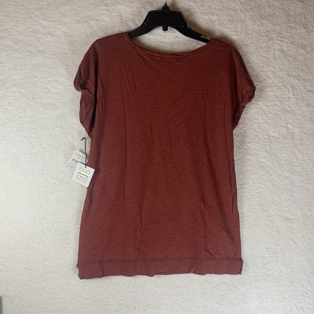 La La Land Creative Co. Women's Twist Neck Short Sleeve T-Shirt In Rust XS 5371....