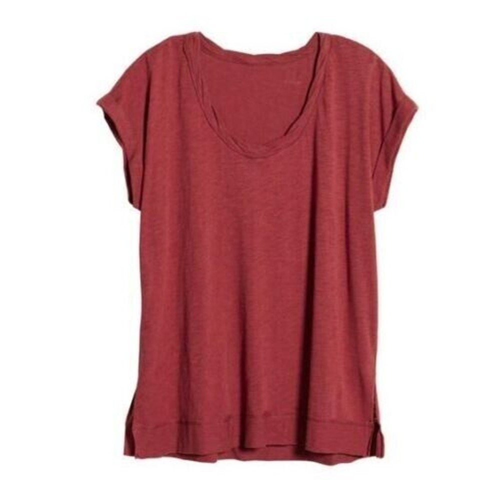 <![CDATA[<div>* True to size. * XS=0-2, S=4-6, M=8-10, L=12-14. An essential tee in a soft cotton blend with a relaxed fit and styled with a twist at the scoop neck for a bit of interest. * 26" length * Vented: Side Slits * Raw Hem * Arm Pit to Arm Pit 19" * Scoop neck * Short sleeves * 60% cotton, 40% modal * Machine wash, tumble dry