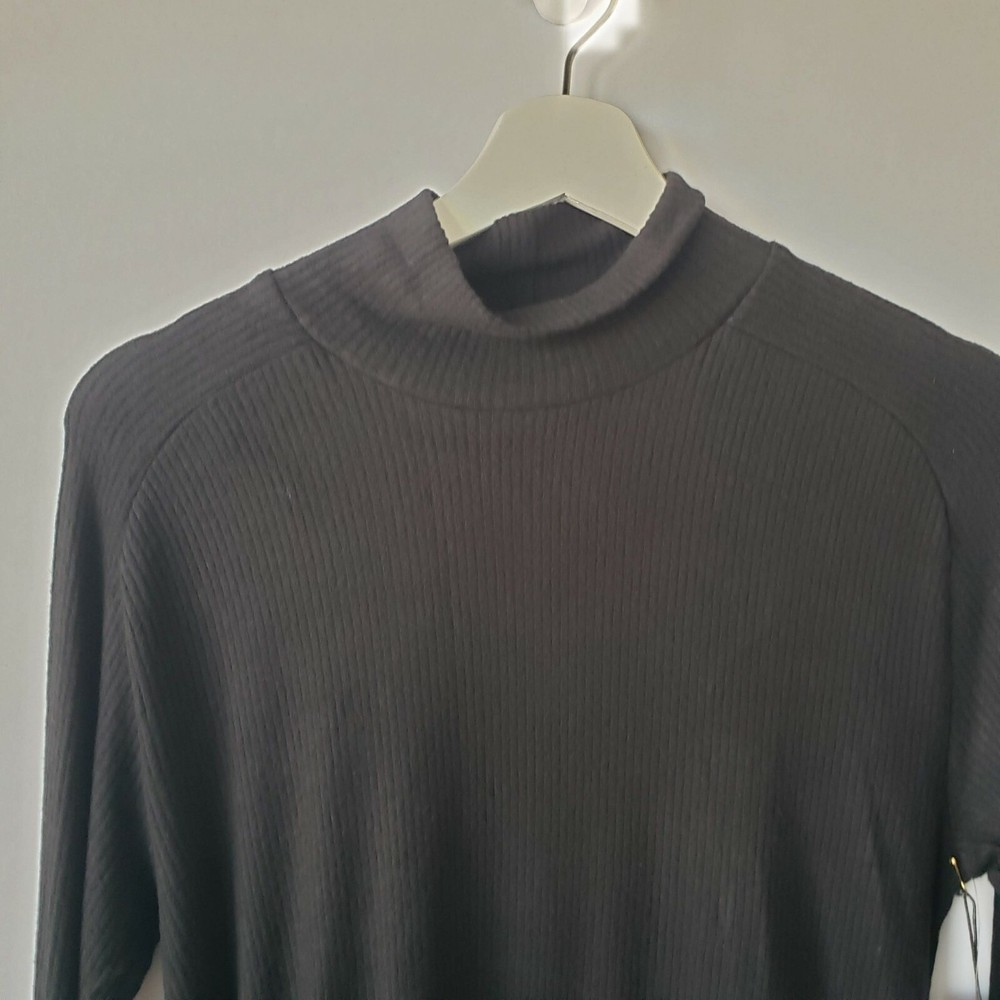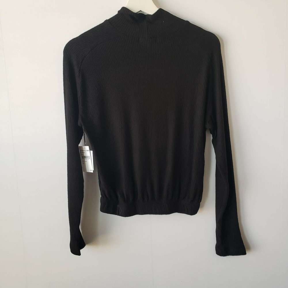 This ribbed crop sweater is so stylish and comfy! The mock neck adds a chic touch, and the fit is perfect—snug but not tight. The fabric feels soft and high-quality, and the cropped length pairs great with high-waisted bottoms. Love the black color—it goes with everything! Definitely a wardrobe staple.