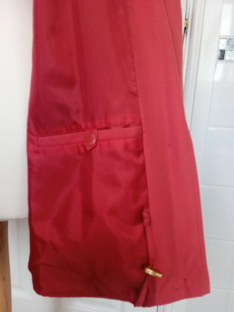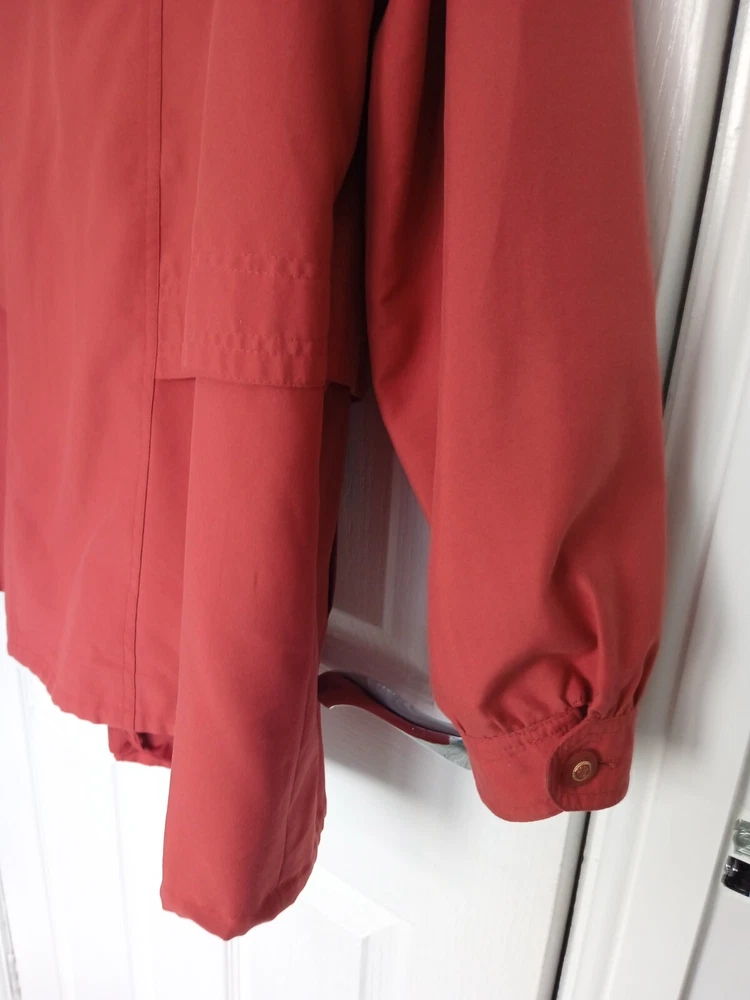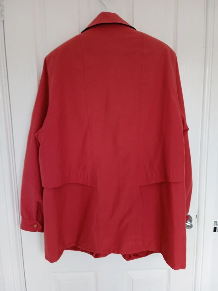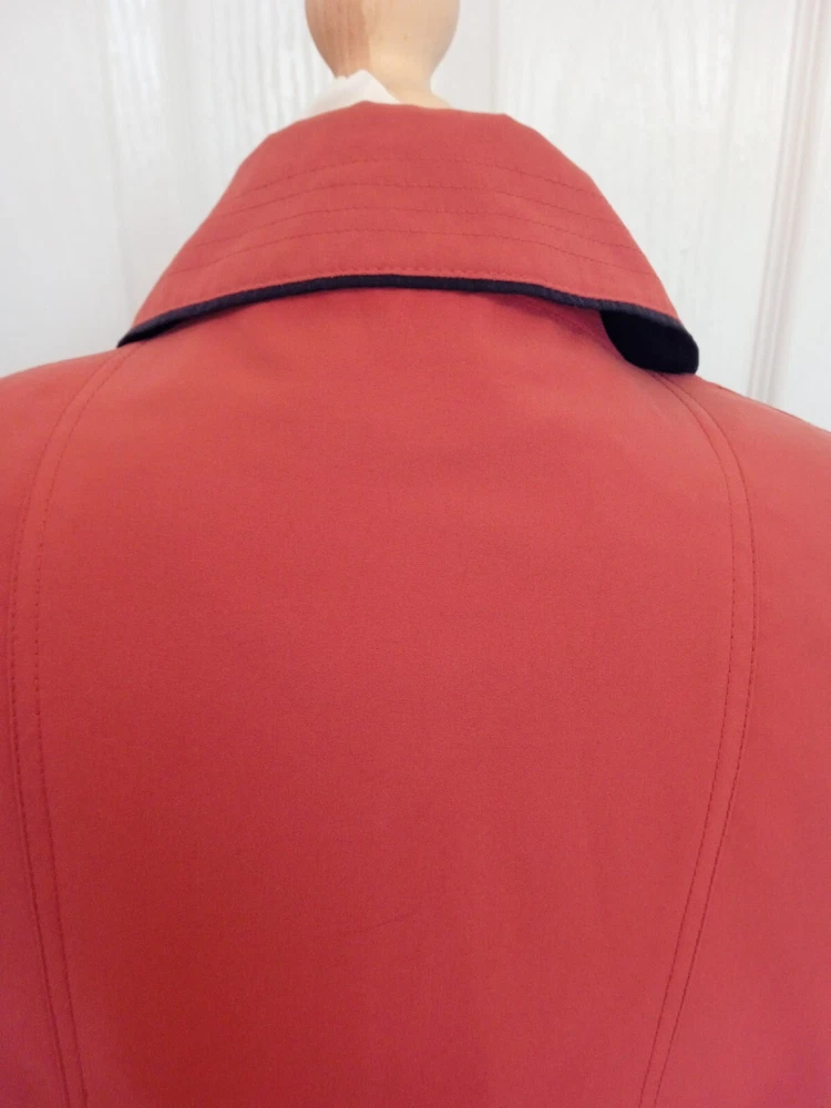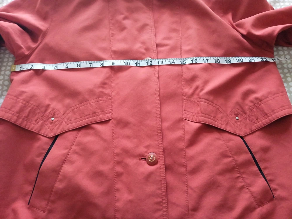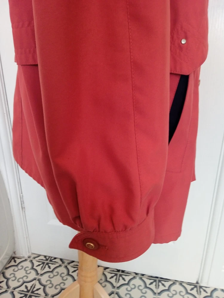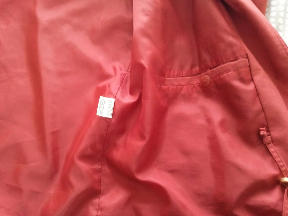 This raincoat is a stylish and practical find! The burnt orange color is gorgeous, and the lightweight fabric makes it easy to wear. It’s fully lined, super soft, and has handy pockets—perfect for rainy days. The contrast piping and neat buttons add a classy touch, while the machine-washable fabric keeps care simple. Great condition, very flattering fit, and the storm flaps add extra protection. A must-have for smart casual outings!