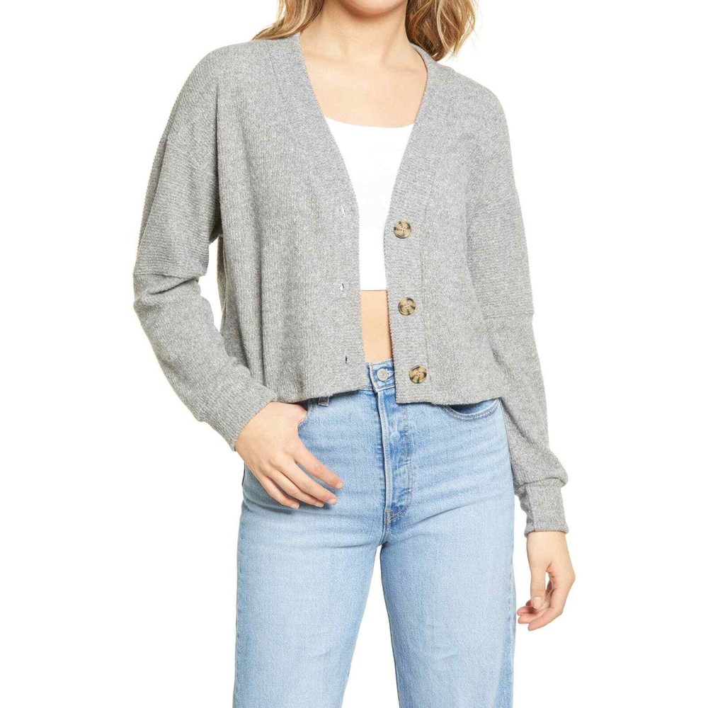 <![CDATA[<div>Lala Land Creative Co Brushed Knit Crop Cardigan Sweater in Gray. PAL3400...