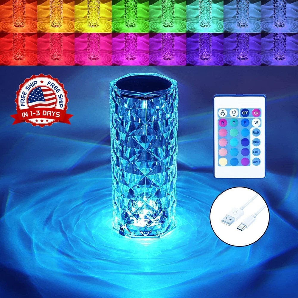Lampara Acrílico 16 Colores LED Para Mesa Mesita De Noche USB Con Control Remoto MODO DE ESCENA MÚLTIPLE: 8.7 IN * 3.5 IN - (Regalos de Navidad) Lámpara RGB de cristal de 16 colores, cree la atmósfera que necesita con varios modos de escena dinámicos para elegir. Cada modo muestra diferentes colores y efectos de luz, ayudándote a sumergirte completamente en tus mundos artísticos. APARIENCIA DE MODA: el nuevo concepto de diseño de diamantes es una experiencia de lujo simple y moderna. Brilla como un diamante sin perder su especial tecnología 3D. La lámpara de cristal de refracción es brillante y colorida. La exquisita pantalla de mesa de cristal adopta una superficie de corte de diamante para mostrar el hermoso temperamento, decorar su sala de estar y crear una atmósfera cómoda y romántica. SEGURIDAD Y RESISTENCIA: lámpara Rgb hecha con material acrílico de primera calidad. Línea de borde muy suave con luz de cristal LED, para no lastimarse las manos, hecha de material acrílico y el diseño de forma de triángulo de borde, los pequeños movimientos no se dañarán, porque es único diseño simple y cilíndrico, por lo que se puede colocar mejor en múltiples posiciones en la sala de estar. Es una excelente lámpara auxiliar fresca para decorar la habitación y tomar fotografías. REGALO PERFECTO PARA EL DÍA DE SAN VALENTÍN: cuando la luz nocturna no está encendida, es un adorno que combina perfectamente con su habitación. Durante el día, la apariencia natural y elegante del diamante de cristal permite colocarlo en cualquier lugar de la casa sin parecer fuera de lugar. Por la noche, es una hermosa luz nocturna colorida y romántica. , para iluminar tu cuerpo y tu mente. Es el mejor regalo de decoración del día de San Valentín/cumpleaños y regalos de fiesta para tu familia, amigos y compañeros de clase.