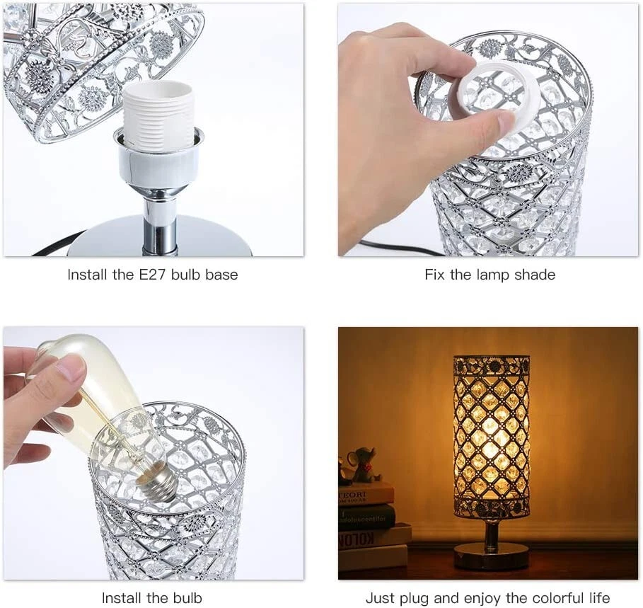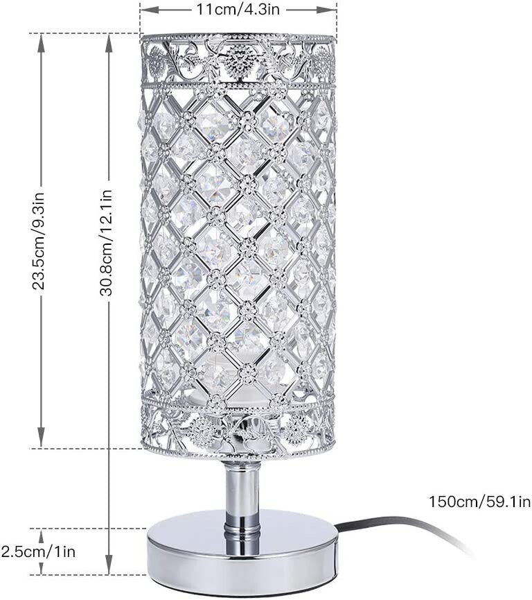 Lampara Cristal Color Plata De Mesa Con Puerto USB Mesita Noche Para Cuarto Casa ★【Estilo sofisticado y apariencia elegante】90 piezas de cristales k5, hermosos y atractivos diseños tallados en huecos que combinan con un patrón delicado, agregarán un toque de glamour a cualquier habitación. ★ 【Efecto de iluminación】 Refleja y refracta la luz, cristales K5 brillantes que tienen un tacto y una sensación de vidrio, difíciles de romper y pueden crear una atmósfera superior y elegante en su habitación. ★【Opción segura】Lista UL, interruptor de encendido/apagado en el centro del cable de alimentación, rápido de instalar, cómodo de usar. ★【Zócalo de base mediana E26】Use una bombilla E26 (la bombilla no está incluida), el color de la lámpara de mesa depende de la bombilla que use, no use bombillas regulables.