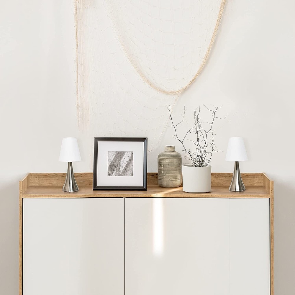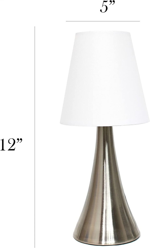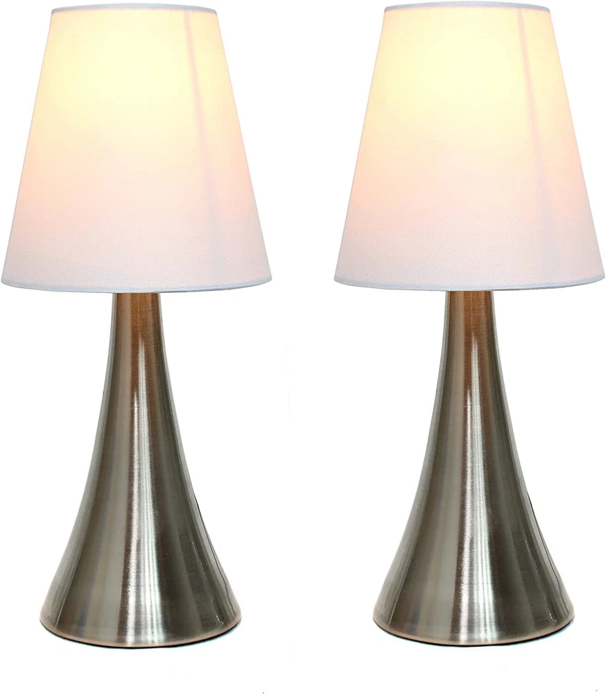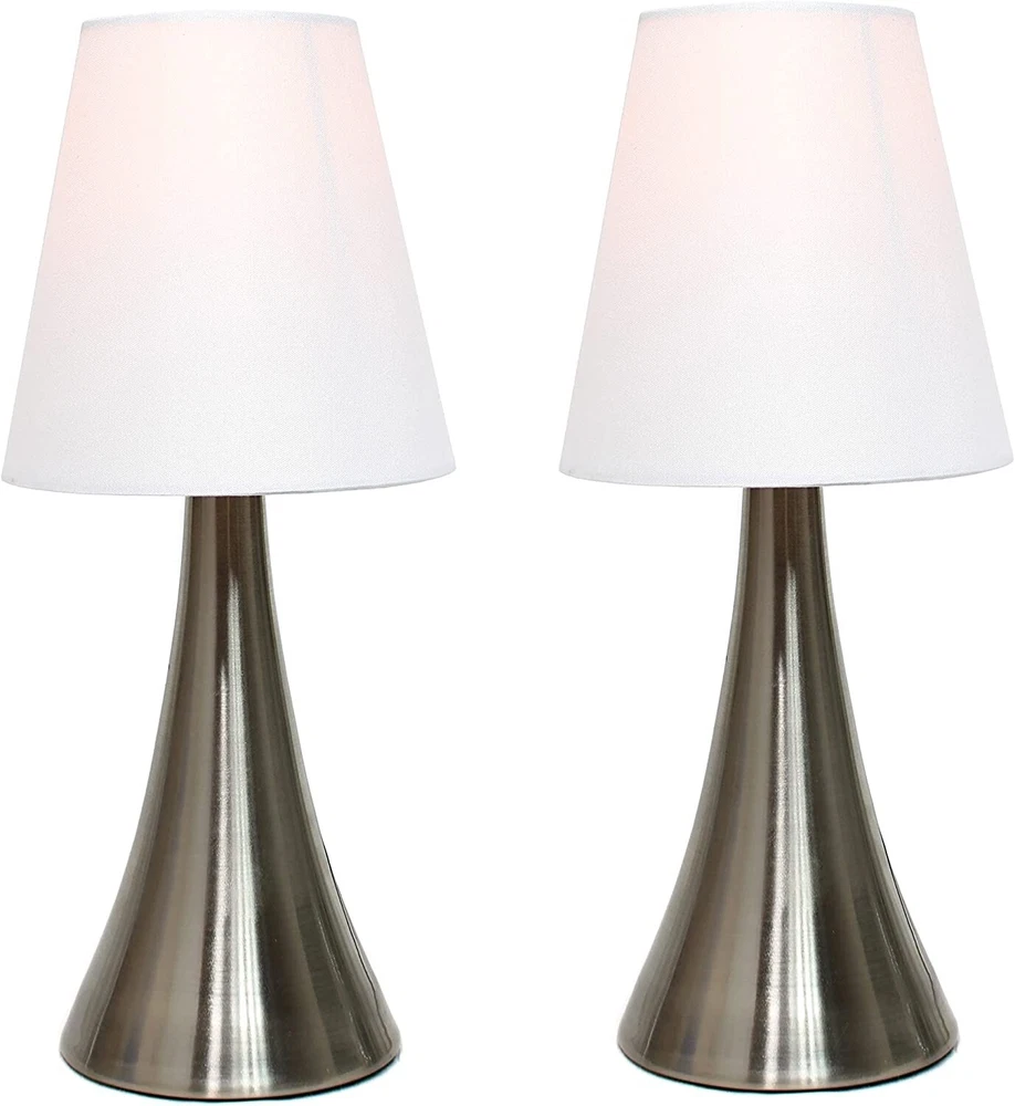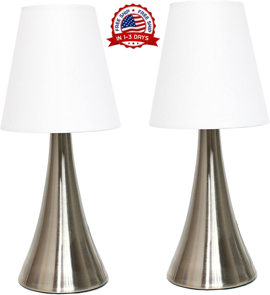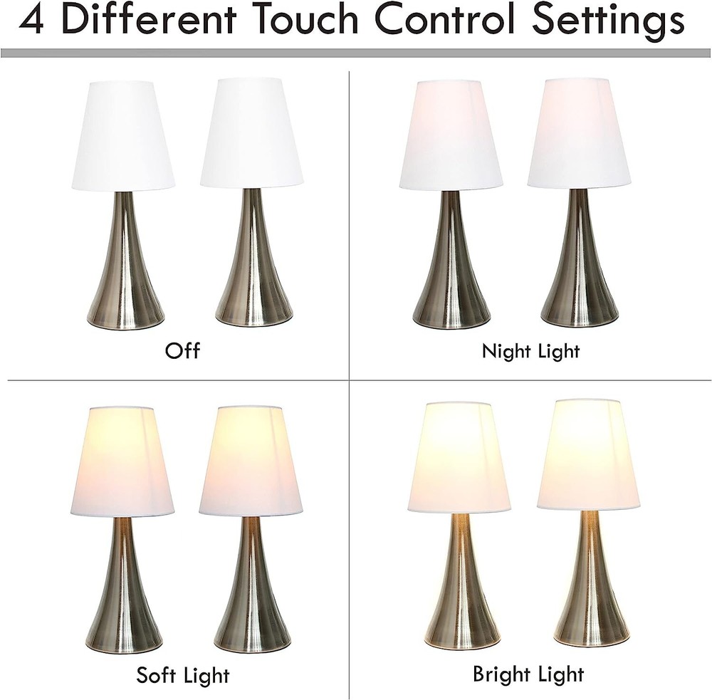 Lampara De Mesa Valencia Mini Touch De Niquel Cepillado 2 PCS Nuevo 2023 Añade un toque contemporáneo a cualquier habitación con estas atractivas lámparas táctiles de níquel cepillado. Añade un toque contemporáneo a cualquier habitación con estas atractivas lámparas táctiles de níquel cepillado. 2 mini bases táctiles de metal de níquel cepillado. Controles táctiles con 4 configuraciones (baja, media, alta, apagada) Controles táctiles con 4 configuraciones (baja, media, alta, apagada) 2 pantallas de tela Las pantallas de tela completan este aspecto moderno. Las pantallas de tela completan este aspecto moderno. 4 ajustes táctiles (alto, medio, bajo, apagado). Cada uno utiliza 1 bombilla de base media tipo A15 de 60 W (no incluida) Altura: 11,5 Diámetro de la pantalla: 4,88 Fuente de alimentación: Con cable - EléctricoCada uno usa 1 foco de base media tipo A15 de 60 W (no incluido). si usa una bombilla CFL, es posible que la configuración táctil no funcione correctamente. Use solo una bombilla incandescente estándar Agregue una sensación contemporánea a cualquier habitación con estas atractivas lámparas táctiles con base de níquel cepillado. Controles táctiles con 4 configuraciones (Bajo, Medio, Alto, Apagado).