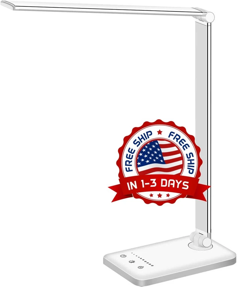 Lámpara de escritorio LED agradable a la vista. Temporizador de apagado automático. Disponible para la compra: plata/negro/rosa/plata Temporizador de apagado automático de 30/60 minutos Modelo plus: La lámpara de escritorio led con cargador inalámbrico. Cargue sin problemas su teléfono o auriculares colocándolos en el centro de la plataforma de carga.