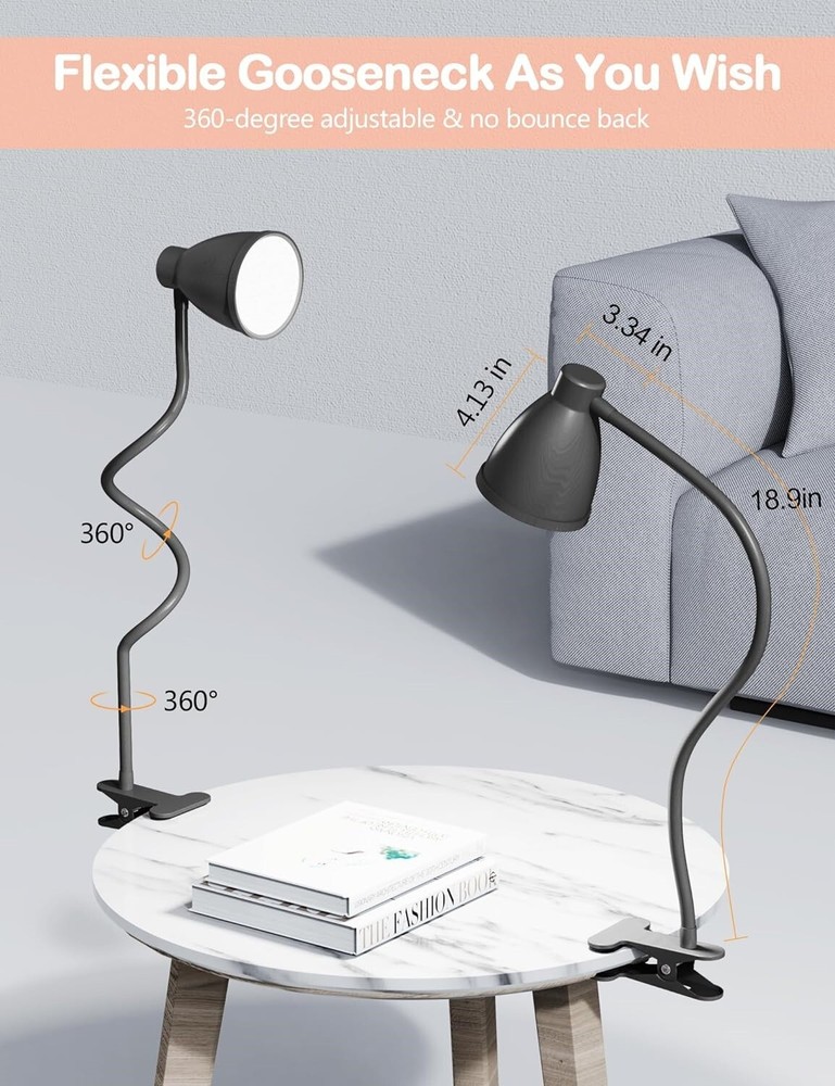 Lampara Led Para Escritorio De Uñas Para Mesa Maquillaje Lectura Estudiar Luz US 🦢【3 modos de iluminación y 10 niveles de brillo】La luz de abrazadera LED cuenta con 3 temperaturas de color: luz blanca cálida (3000 K), luz natural (4500 K) y luz blanca fría (6500 K). Cada modo de iluminación tiene 10 niveles de atenuación de brillo. Totalmente 30 modos de iluminación para satisfacer todos sus requisitos. Sujete la cabecera o la cabecera y lea en la cama, ¡la luz cómoda le brinda una vida cómoda! 🦢【Cuello de cisne flexible de 360° y cable USB largo y un adaptador de CA confiable con certificación UL】El cuello de cisne flexible y duradero le permite ajustar la luz de su clip con facilidad y dirigir la luz hacia donde desee. Fácil de conectar el cable USB a cualquier puerto USB disponible (computadora portátil/escritorio/banco de energía/adaptador USB) para alimentar la lámpara. Se incluye un adaptador de CA, que está certificado por UL, mucho más seguro que otros adaptadores, ¡siéntete tranquilo! 🦢【Función de memoria y temporizador de apagado automático de 1 minuto y función de temporización】Una vez que enciende el botón, la luz del escritorio reanuda la última configuración de brillo y temperatura de color utilizada. Presione el botón de encendido/apagado durante 3 segundos, la luz azul parpadea y la lámpara se apaga automáticamente después de 1 minuto. Haga doble clic en el botón de encendido/apagado, la luz indicadora roja se encenderá y la lámpara se apagará automáticamente después de media hora. 🦢【La mejor calidad de iluminación y cuidado de los ojos profesional】La luz de lectura para niños que cuida los ojos, hecha de 38 chips LED de alta calidad, ofrece una luz que no genera imágenes fantasma ni parpadea, la luz del libro no fatigará los ojos incluso si permanece en la luz durante mucho tiempo. tiempo. Diseñado para ayudar a quienes leen y trabajan horas al día a proteger la vista y reducir la fatiga visual. Gran regalo para niños y ratones de biblioteca. 🦢【Lámpara de escritorio LED de energía y alimentación por USB】 La alimentación por USB es fácil de adaptar a cualquier puerto USB disponible para alimentar la lámpara. Como luz LED ecológica, consume un 80% menos de energía que las luces incandescentes tradicionales, por lo que puede reducir su huella de carbono y al mismo tiempo reducir su factura de electricidad. ADAPTADOR 5V, 2A INCLUIDO