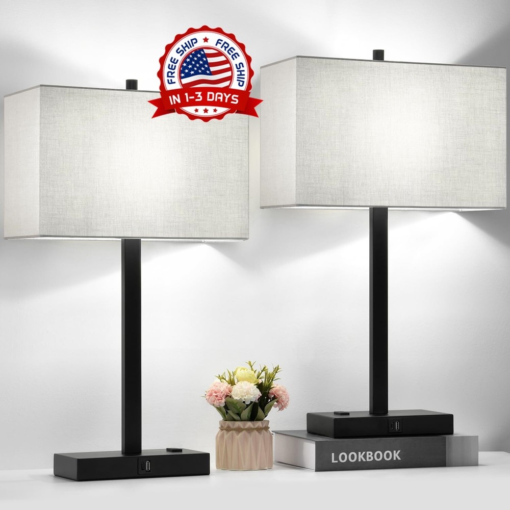 Lampara Modernas Para Mesa De Noche Lamps Bedroom Nightstand Metal Lamps NUEVO ❤【Juego de 2 lámparas de mesita de noche táctiles regulables de 3 vías】La lámpara táctil regulable tiene 3 niveles de brillo. (Bajo, Medio, Alto), lo que le permite ajustar el brillo de la luz. simplemente toque cualquier parte metálica de las lámparas de la mesita de noche para cambiar la configuración de bajo a brillante, por lo que no tiene que buscar un interruptor en medio de la noche ❤️【Cuidado de los ojos y protección de los niños】: Esta lámpara de mesa táctil cuenta con una pantalla de lino gris natural todo en uno fácil de instalar, hecha a mano. Minimiza el contacto visual directo, protegiendo sus ojos contra la tensión y la fatiga. La base ponderada de la lámpara con una alfombra antideslizante y un diseño resistente garantiza la seguridad cerca de niños y mascotas, ya que es menos propensa a caerse, lo que proporciona una estabilidad confiable y tranquilidad. ❤️【Excelentes puertos de carga USB A+C y toma de corriente CA】¿Alguna vez te cuesta encontrar un enchufe de carga en la oscuridad de la noche? Esta moderna lámpara de mesa para el dormitorio está equipada con puertos USB A de carga rápida, USB C (5 V/2,1 A) y una toma de corriente CA (120 V), lo que te permite cargar hasta tres dispositivos simultáneamente. Úsala rápidamente para cargar tu teléfono, iPad, auriculares, Kindle, portátil y otros dispositivos electrónicos, incluso cuando las lámparas de noche estén apagadas. ❤️【2 bombillas LED de luz diurna de bajo consumo incluidas】: Esta lámpara de dormitorio viene con dos bombillas LED regulables, 6 W (equivalente a 60 W), que ahorran hasta un 90 % de energía para reducir los costes de electricidad. Con 800 lúmenes y luz natural de 5000 K, estas bombillas tienen una vida útil de más de 25 000 horas, lo que elimina la necesidad de comprar bombillas adicionales. Proporciona una iluminación estable y suave sin parpadeos ni reflejos, protegiendo tus ojos.
