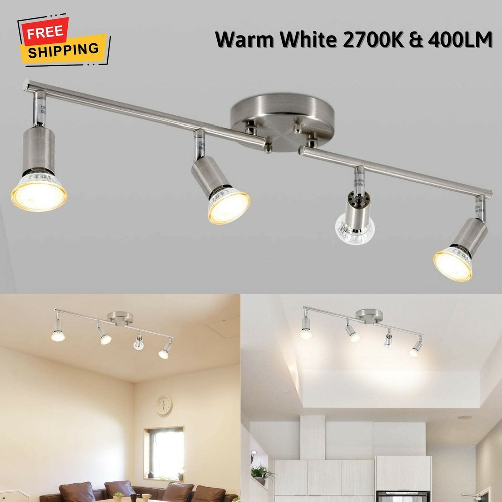 Contact Us Add to Favorite Welcome to POLAR BEAR STORE Contact Us Fast Shipping Hassle Free Return eBay Money Back Guarantee Authenticity Guarantee Lampara Para Techo 4 Luces Modernas Iluminacion De Pista LED Casa Mesa Colgantes Features Concise Design: The led track lights has an industrial yet traditional design, the straight line of the track bar pairs with the exposed socket construction and is finished off with a matt silver to complete the perfect minimalist design. Flexible Adjustable Heads: You can adjust the light beam to exactly where you want to light up by rotating it 270 degrees horizontally and 90 degrees vertically. Energy Saving: Includes 4 x 4W GU10 led bulbs(not dimmable), 400 lumen light output, 2700K Warm White 85 CRI, which produces a more accurate color rendering of the objects around it. Durable & Easy to Install: The ceiling light is made from metal, with a matt nickel finish, no fading, corrosion resistance. ETL listed, rated for indoor and dry locations, can be installed on a sloped or vaulted ceiling. Wide Application: the ceiling spotlights has strong and focused beam, is perfect for creating romantic atmosphere in bedroom, kitchen, bathroom, sofa, hospitality, shop, bar etc. Item Description 4 Way Ceiling Spot Lighting Dimension of Lamp Before purchase, please read the detailed dimensions of the lamp as shown on the left. Length: 24.8'' Height: 5.3" Dimensions of the base: 4.72'' Durable Material The ceiling spotlight made of metal can be efficient heat dissipation. Brush nickel to prevent rust and will be more durable. Package Contents: 1 x 4-Lights LED Track Light 4 x GU10 LED Bulbs 4W Warm White 2700K 1 X User Manual About us Polar Bear Store Customer service is our top priority! Please be sure to read the description thoroughly to make sure that this is the item you want before making a purchasing decision. If you have any questions about this item, please contact us via eBay messages before placing your order. We make every effort possible to accurately describe and depict the items. Please be aware that slight variations in color may be due to differences in lighting and computer monitor resolutions. All items are in stock at the time of listing; however, in the unlikely and unforeseen event that we are unable to fulfill your order through any of our networked warehouses, we will notify you as quickly as possible and offer you a 100% refund on your purchase. Thank you for shopping with us. We appreciate your business! Payment PayPal is our preferred method of payment. If you do not have a PayPal account, all major credit cards are gladly accepted through PayPal as the payment processor. PayPal offers great buyer and seller protection. Your order will be processed pending receipt of cleared payment through PayPal. Sales tax may be charged depending on your location. Shipping We provide fast, free shipping. SHIPPING TIME: 1-10 usiness day handling time, 3 business days on the way. Please allow 3-13 days to delivery!of receiving cleared payment. We ship to the lower 48 contiguous United States only. We do not ship to P.O. Boxes or APOs. For select items, we ship internationally through eBay?s Global Shipping Program. We do ship most of our smaller items internationally using eBays Global Shipping Program. If ordering electrical items outside of the U.S., please note that they will come equipped with a standard U.S. voltage plugs. You will need a suitable adapter to use the item in your country. Certain restrictions apply. Standard or Economy Shipping is ALWAYS FREE! You will be notified via eBay messages as soon as your items ship. Special Notice for Freight Items: If an item ships via Freight (Truck) Delivery, a valid phone number will be required so that we can contact you to schedule delivery. The item may be delivered with curbside delivery. An adult signature will be required. Please be sure to have available help on hand to assist you with moving the item to the desired location in or outside of your home. Freight items must be inspected upon delivery. In the unlikely event that damaged is observed, you MUST refuse delivery and note the damage on the shipping receipt and send it back via the Freight carrier. Returns will not be accepted on Freight items after they have been delivered, inspected, and the driver has left the premises. Returns We offer a 30 day return/exchange policy for most of our products. You can request a refund if you are dissatisfied for any reason with your product. (Restocking Fee May Apply). Only factory defects are accepted as a reason for a return. In the case of factory defects, if available, we will replace the product for you. When returning an item, it must be in all of the original packaging and include all of the original accessories or items that came with it. The item and package should be in original and perfect condition. You will be required to cover shipping on the return of non-defective items. All returns MUST be done within 30 days of date of purchase. Please note that we cannot give refunds or replacements after the 30 day limit has expired. When sending in a return, please note that it can take up to 7 business days for the return to be processed. We do our best to process as quickly as possible. We are extremely fair, and in the rare event of something out of the ordinary happening with our products or shipping, we will gladly work with you to find a fair resolution. Disclaimer Were sorry, but we do not honor product exchange requests. If you need to exchange an item received, you will need to go through the normal returns process identified in our returns section and then order the correct item, if it is still available. Orders are processed immediately and dispatched to fulfillment as soon as they are received. For this reason, we are typically unable to honor cancellation requests. If you need to cancel the transaction, please contact us as soon as possible and we will attempt to cancel the order. If the