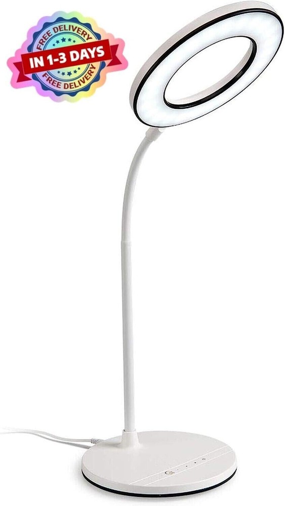 All orders will be shipped from our warehouse in the USA. Delivery time : 1-5 working days. We Always trying to bring high quality products and the best service experience to you. Please send me the message if you have any problem need for help before open the dispute. Lampara led para escritorio de uñas para mesa maquillaje lectura estudiar luz US About this item Comfortable & Adjustable Brightness:Designed with 48 LED bulbs (48lumen), which gives out natural and non-flickering light that won't hurt or strain your eyes. And there are 12 light modes, you can adjust the brightness and the temp simply by touching the switch. 360° Flexible Goose Neck: designed with a soft, durable and 360 degrees rotatable goose neck, easier to adjust the lighting direction to your working area at will without harsh sound. Round Design: The table lamp uses a special ring design, the light is more uniform than the solid,no dizzy light, no shadow and soft light,, so that your eyes no longer tired, study for long time. Modern Design: Naturally fit your desk, room , living room and office; rotatable lamp head, made from durable plastic with 48 LEDs, cool and modern desk light. Worry-Free Warranty:We back our lights with an 12-month warranty and promise quick respond customer support.