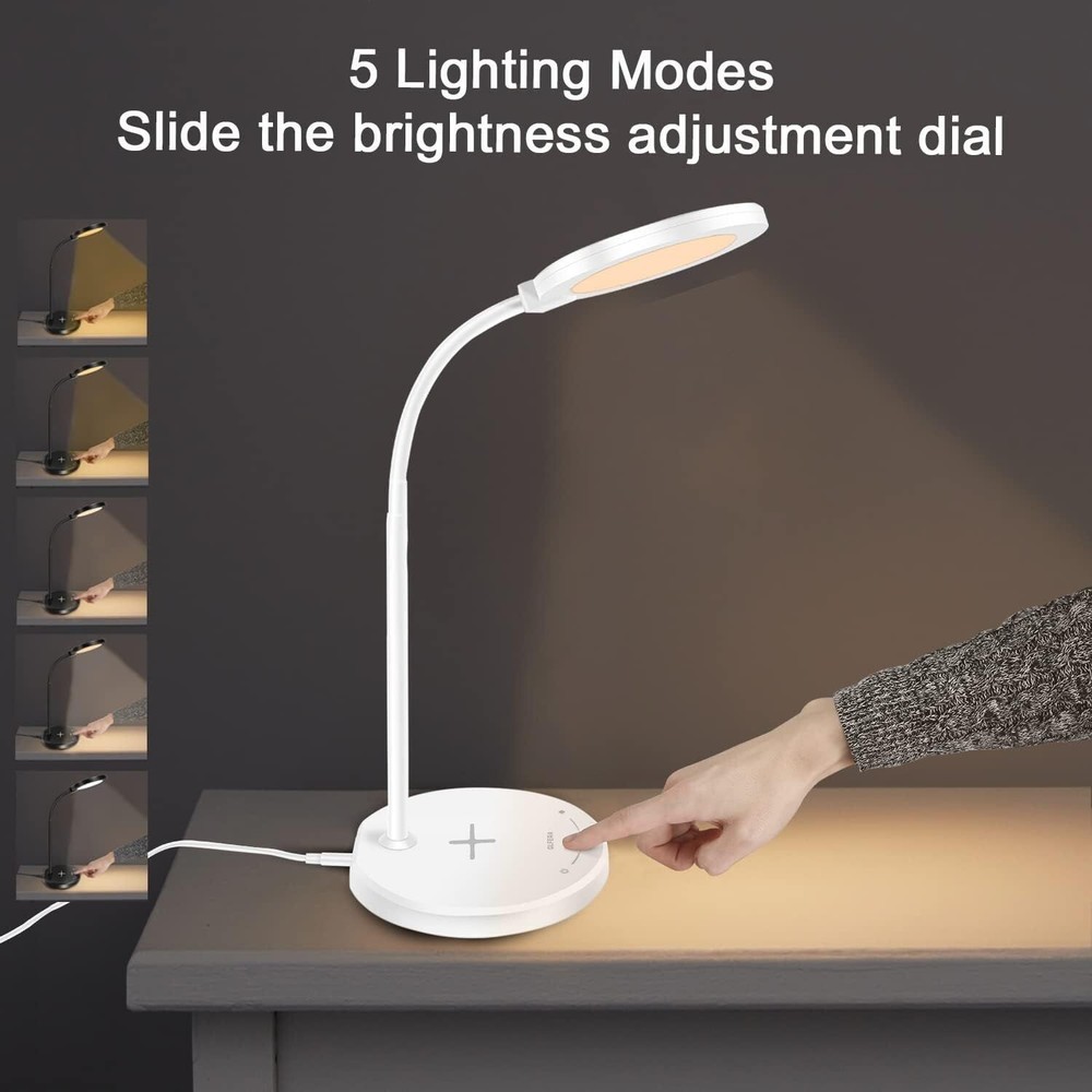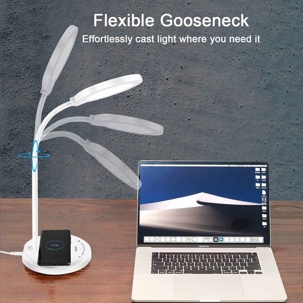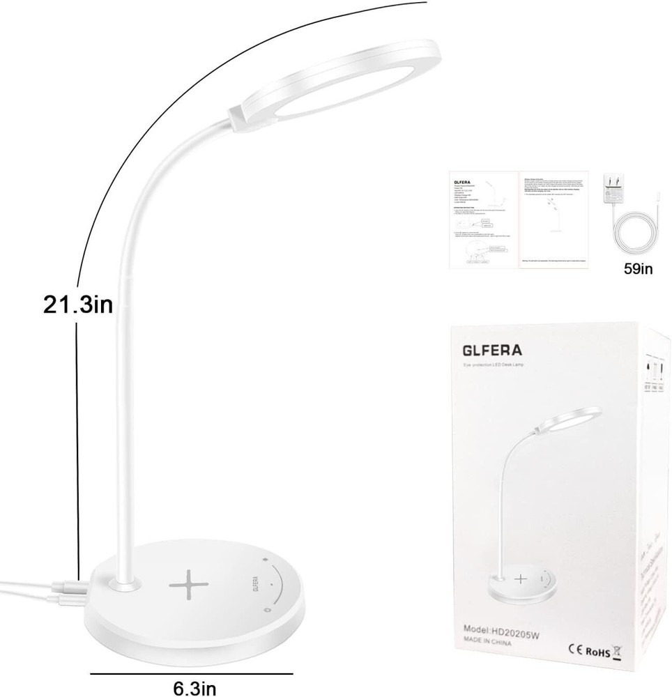 Finish Type Glossy Base Material Aluminum Product Dimensions 11.42"D x 6.69"W x 29"H Item Weight 1 Kilograms Lamp Type LED About this item ♥ EYE-CARING: GLFERA table lamp uses a special circular design, light is soft and uniform, non-flickering, no glare, protect your eyes. The desk lamp features 5 lighting modes with 10 brightness levels to meets all your needs. Ideal for studying, working, reading and sleeping. ♥ USB Charging Port: There is a 5V/2A USB charging port on the back of the LED lamp, you can charge your smartphones, tablets and other devices without extra adapter. ♥ 360° Flexible Gooseneck: Designed with a soft, durable rotatable goose neck. Easily adjust the lamp's gooseneck to orient the light beam exactly where it is necessary. ♥ Modern Design & Energy Efficient: Exquisite appearance, fit your desk, room , living room and office. This LED lamp is made of energy efficient 88pcs LEDS, extended lifespan up to 50,000 hours. The memory function always remembers your lighting settings last used. ♥ CUSTOMER SERVICE: GLFERA always take customer experience as the top concern. If you’re not 100% satisfied, please get in touch with us, we will help you within 24 hours.