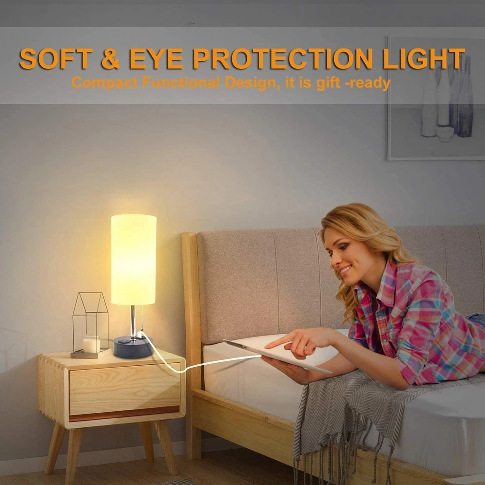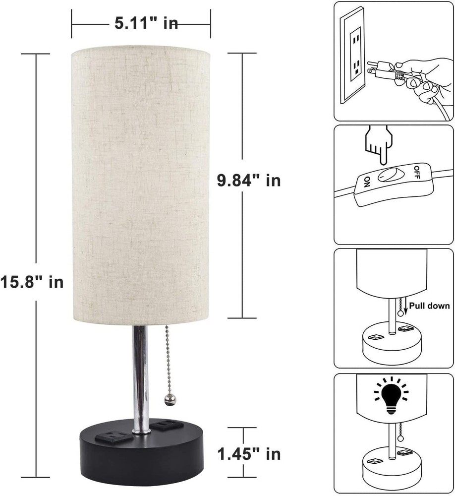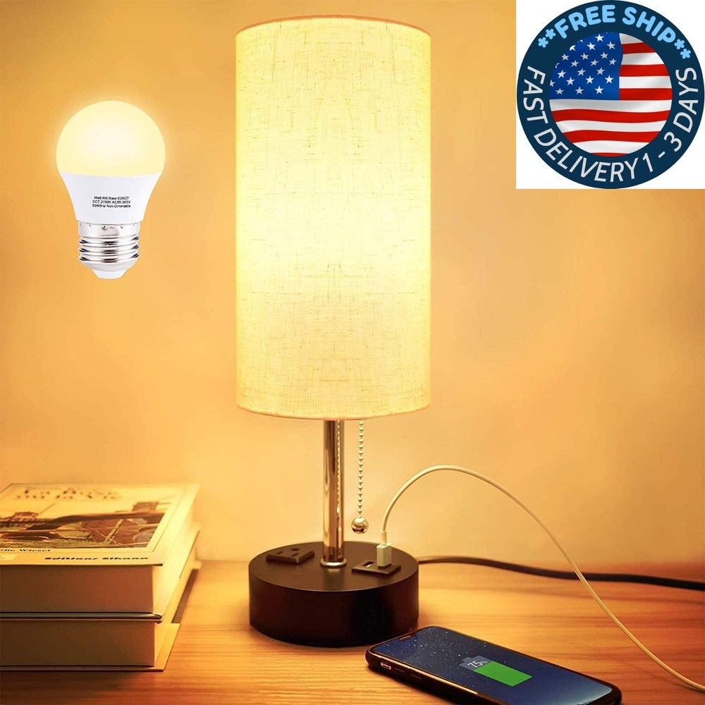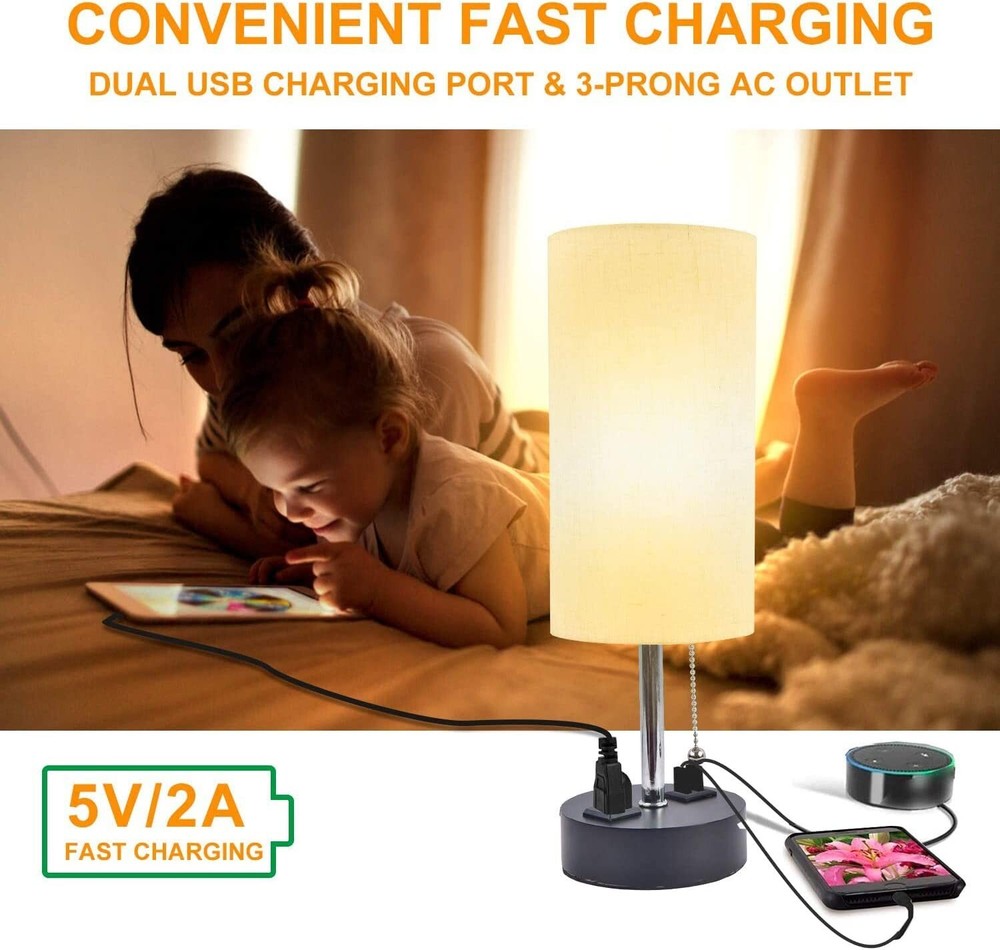Lamparas De Mesa De Noche Luces Retro Gris Con Puerto USB Sala Dormitorio Coci Lámpara de noche USB dual?Dos puertos de carga USB de 5 V/2 A y una toma de corriente están disponibles para que cargues tus teléfonos móviles, iPad y otros dispositivos al mismo tiempo, no afectará su funcionamiento normal. Es más conveniente para usted usar sus dispositivos en la cama durante la carga de la lámpara. ?Haz tu vida más fácil?El interruptor de la lámpara de mesa USB es fácil de controlar. Después de enchufar la toma de corriente, solo necesita tirar de la cadena de metal y presionar el botón de ENCENDIDO/APAGADO para encenderlo/apagarlo. Por lo tanto, no tiene que levantarse y encontrar el pequeño interruptor en la oscuridad de la noche para encender la lámpara, simplemente tire de la cadena de metal si ha presionado el botón de ENCENDIDO. ?Bombilla LED de ahorro de energía incluida? Ra?80 como un color de luz diurna, 600LM. Esta moderna lámpara de noche viene con una bombilla LED blanca cálida de 2700 K de primera calidad. Te ayudará a ahorrar hasta un 90% de energía. Tiene una larga vida útil de más de 30.000 horas. La suave iluminación crea una atmósfera cómoda y tus ojos no estarán estresados ??ni siquiera leyendo durante mucho tiempo. ?Diseño de lámpara moderno minimalista? El diseño simple y moderno de la lámpara de cabecera combina perfectamente con diferentes tipos de diseño de habitación. La luz de nuestra lámpara de sobremesa es suave pero no oscura. Se adapta bien a su dormitorio, sala de estar, habitación de invitados, habitación de los niños, etc. Con la luz suave, se sentirá relajado y relajado. Definitivamente es una mejor opción como regalo para su familia o amigos.