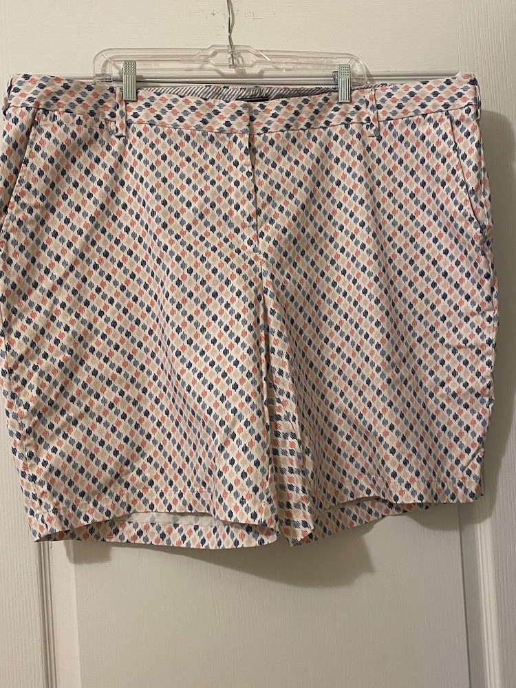 Lands' End Women's Mid Rise Blue Orange White Shorts Size 26W Plus Pockets. See pics for measurements