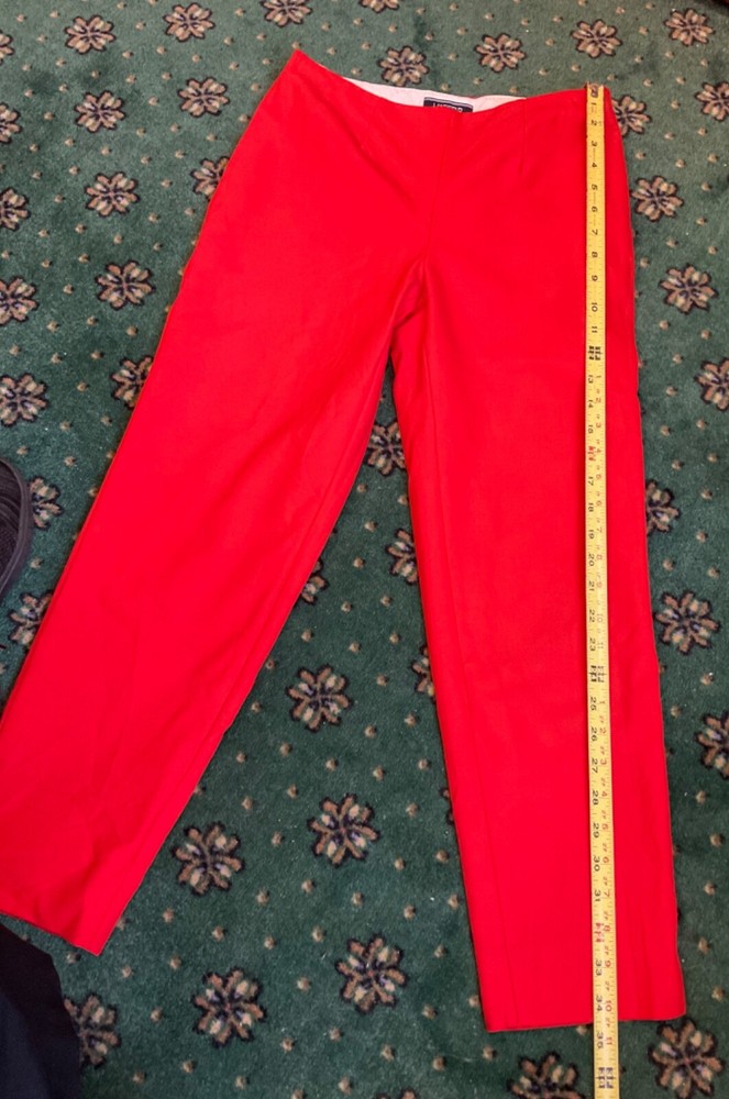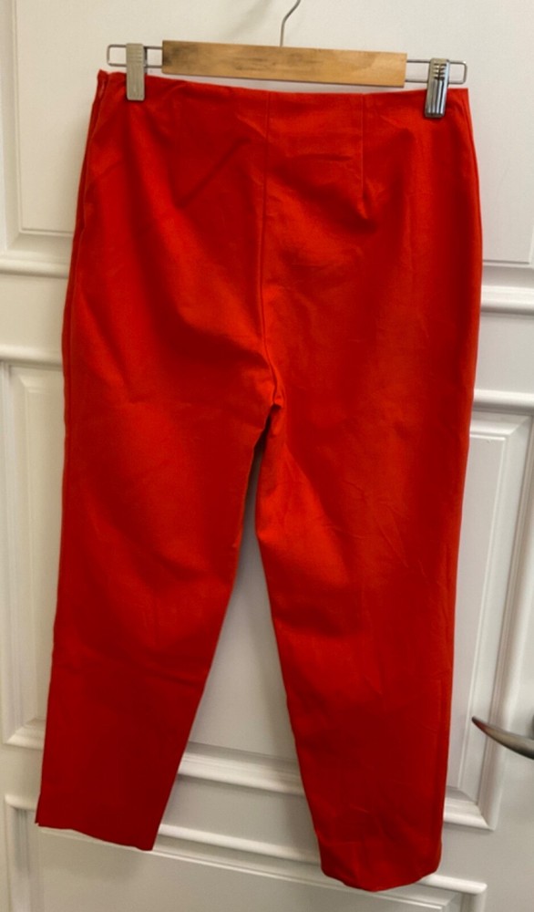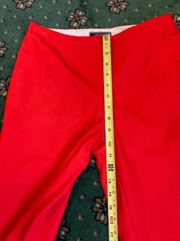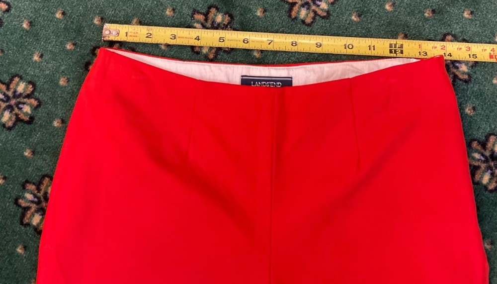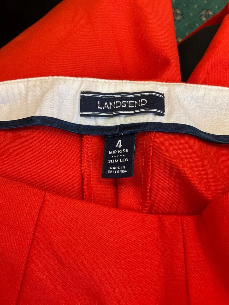 Lands End Womens Pants Orange Sz 4 Mid Rise Slim Leg Stretch Side Zip - READ! ***PLEASE NOTE: These beautiful orange Lands End pants are approximately 34.5" in length...therefore, the look will differ depending on your height. More of a cropped look for someone taller, etc. Good pre-owned condition! Attractive, comfortable pants...cotton, rayon and spandex for a comfortable, stretchy fit. Flat front, side zipper, no pockets, stylish slits at the ankles. Cleaned per ebay's standards. Measurements - length: 34.5", inseam: 25", rise: 9.25", waist: 28". Please see photos for measurements, details and condition. Don't hesitate to ask if any questions. We ship promptly and carefully. Thank you so much for looking!
