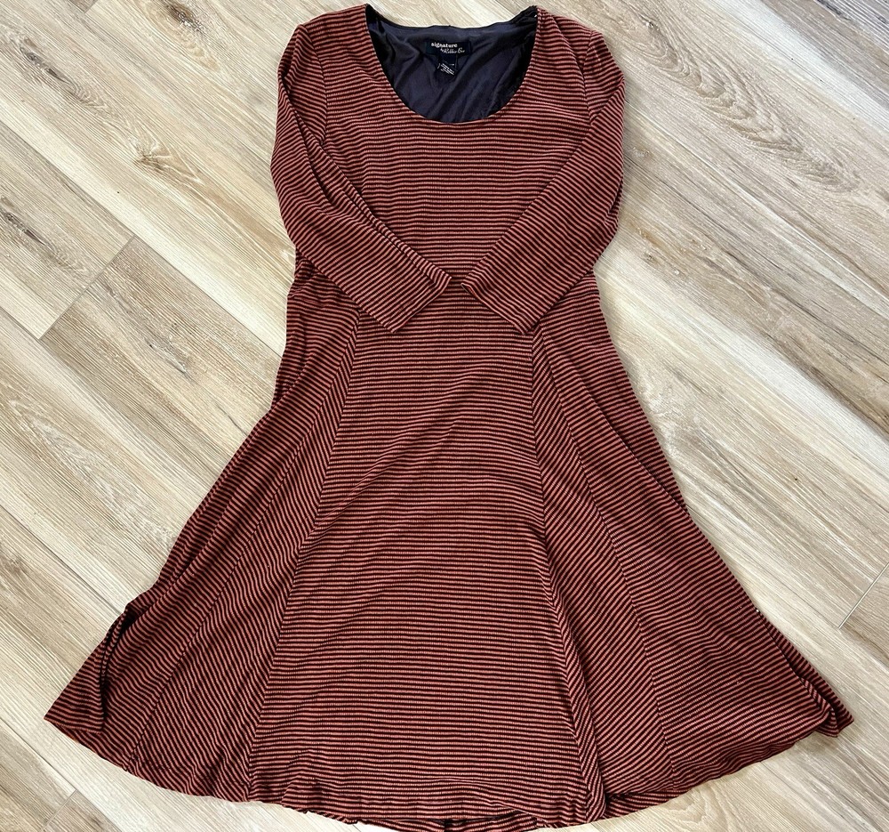 Approximate Measurements (taken across flat garment): Armpit to armpit 18” Length (from shoulder to hem) 39” Preowned condition. Missing belt. Please see all images for condition details. Thanks and Happy Shopping! —— US returns accepted within 30 days.