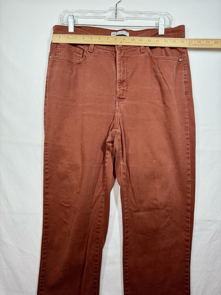 Upgrade your wardrobe with these stylish Lee Classic Fit women's jeans in a beautiful burnt orange color. These jeans are made of a comfortable cotton blend fabric with a denim texture, ensuring a durable and fashionable look. The 5-pocket design with button accents and zip closure provides ample storage space for your essentials. These jeans have a mid-rise fit and a straight leg style, perfect for any occasion. The stretch feature adds to the comfort, making them an ideal choice for any season - winter, summer, fall, or spring. The Lee Premium Classic product line guarantees quality, and with no vintage element, these jeans are a timeless addition to your collection.