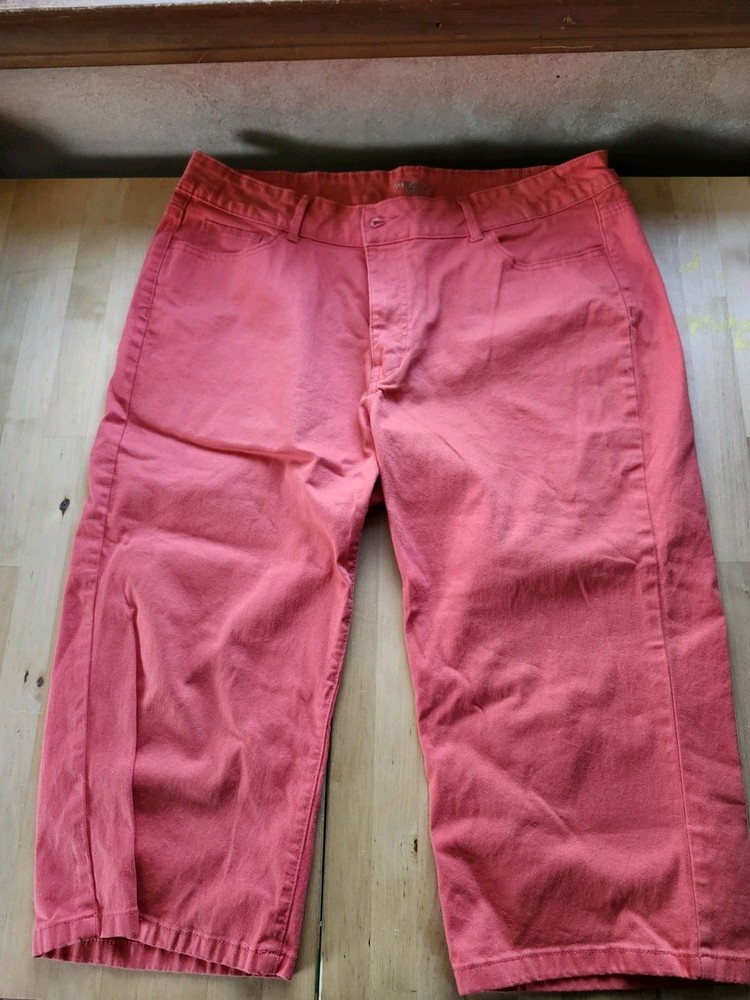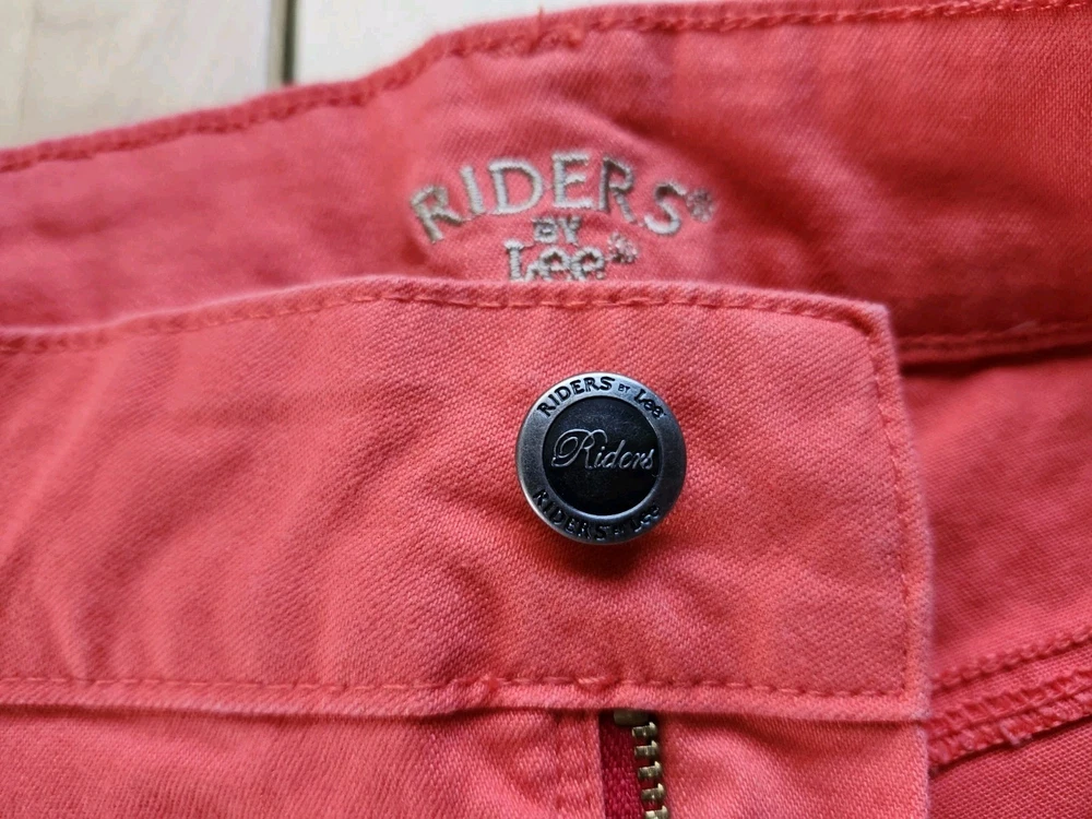 Lee Riders women's mid-rise capri pants in a vibrant orange. Made from a comfortable cotton spandex blend, these pants are perfect for travel, activewear, or casual outings. The flat front and regular fit create a flattering silhouette, while the five-pocket design adds functionality. Excellent condition, very little wear, if any. Slightly wrinkled from storage. See pictures for measurements. Smoke-free environment. Free returns within 30 days. Fast shipping!!